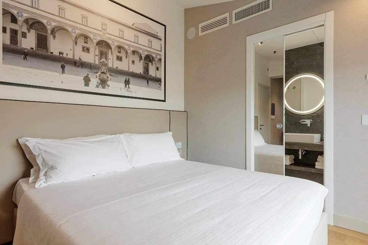 Mh Florence Hotel & Spa расположенный всего в 150 метрах от центрального вокзала и в нескольких минутах пешком от главных исторических достопримечательностей. Отель сочетает стильные номера, СПА‑центр с бассейном, сауной и массажными процедурами, а также удобства для семей и гостей с ограниченной мобильностью. Расстояние до аэропорта Флоренции составляет примерно 4,8 км.