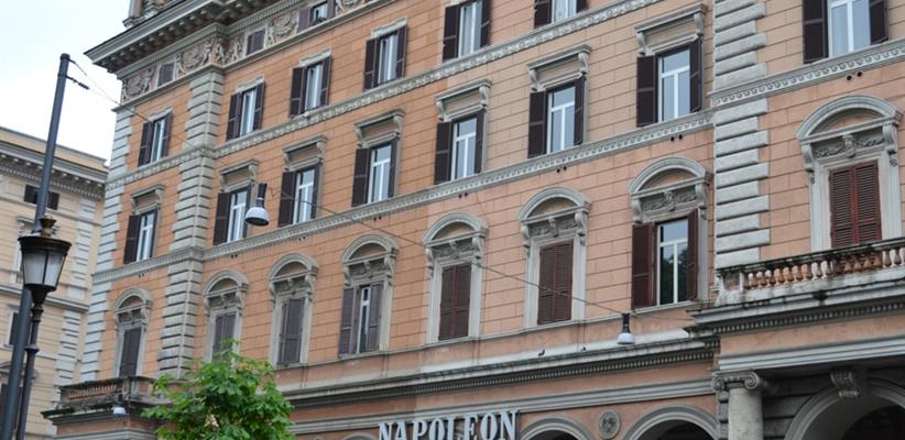 Отель Napoleon занимает здание XIX века на площади Виктора-Эммануила, что в нескольких шагах от живописных садов с одноименным названием и станции метро. Переступив порог комплекса, постояльцы сразу чувствуют яркий контраст между оживленным движением в одном из центральных районов Рима и тишиной во всех залах гостиницы. Поэтому отель привлекает тех, кому важно отдохнуть в спокойной атмосфере после насыщенного экскурсионного дня или иметь возможность сосредоточиться на подготовке деловой встречи организовать которую легко здесь же, в конференц-зале.