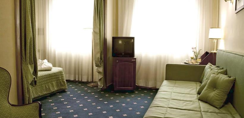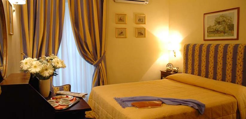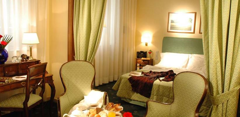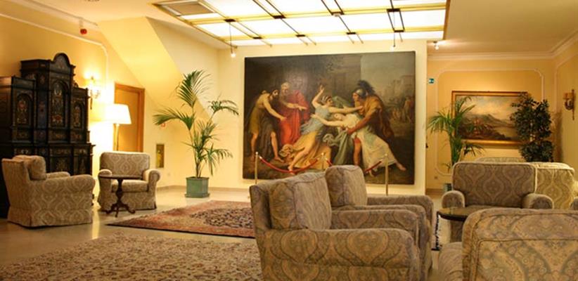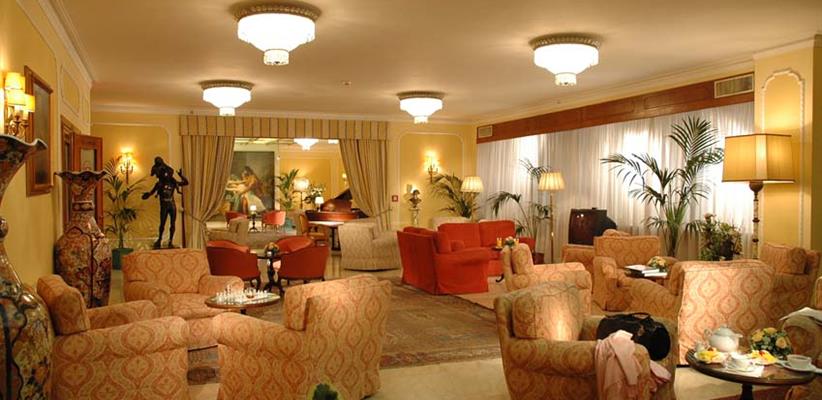 Холл украшен репродукциями картин итальянских художников в позолоченных рамах, мягкие диваны, обитые фактурными тканями, располагают к чтению или просто созерцанию. Окна большинства номеров выходят в ухоженный внутренний дворик, куда не доносится шум улицы.