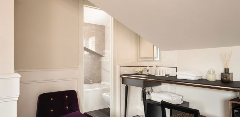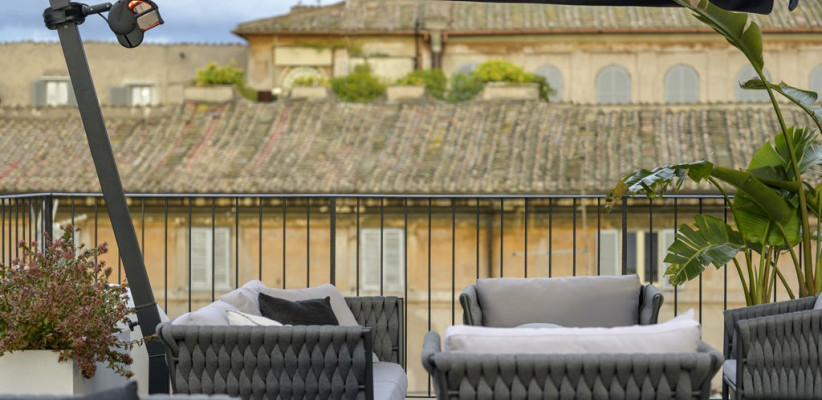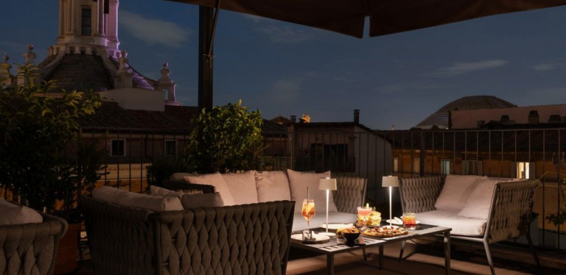 Изысканные интерьеры и современный стиль создают идеальное сочетание рационалистического искусства и последних тенденций дизайна. Эксклюзивное место, где каждое желание исполняется среди ароматов места, бархата мебели, гастрономических предложений, звуков и непревзойденных римских закатов, которыми можно насладиться с его эксклюзивной террасы, где за фирменными коктейлями и выбором закусок можно полюбоваться новой и уединенной панорамой Вечного города.