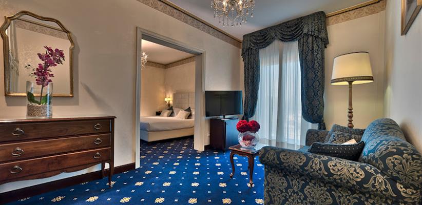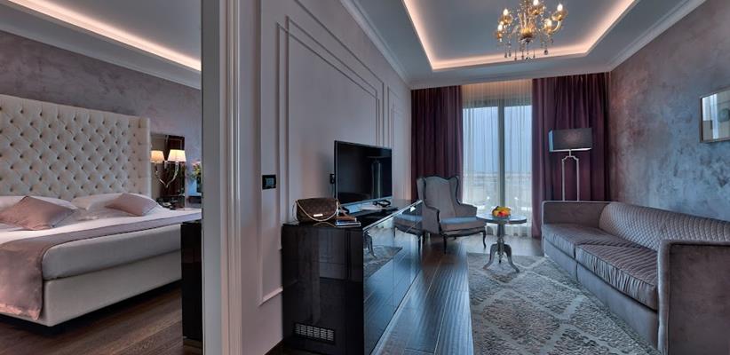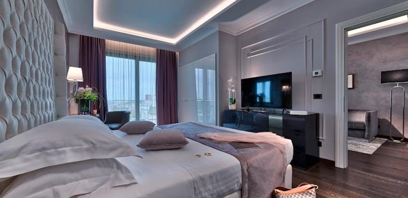 Senior Suite площадью 40-45 кв. м., две ванные комнаты с ванной и душем, гостиная с диваном, телевизор с международными каналами, сейф, мини-бар,2 террасы.