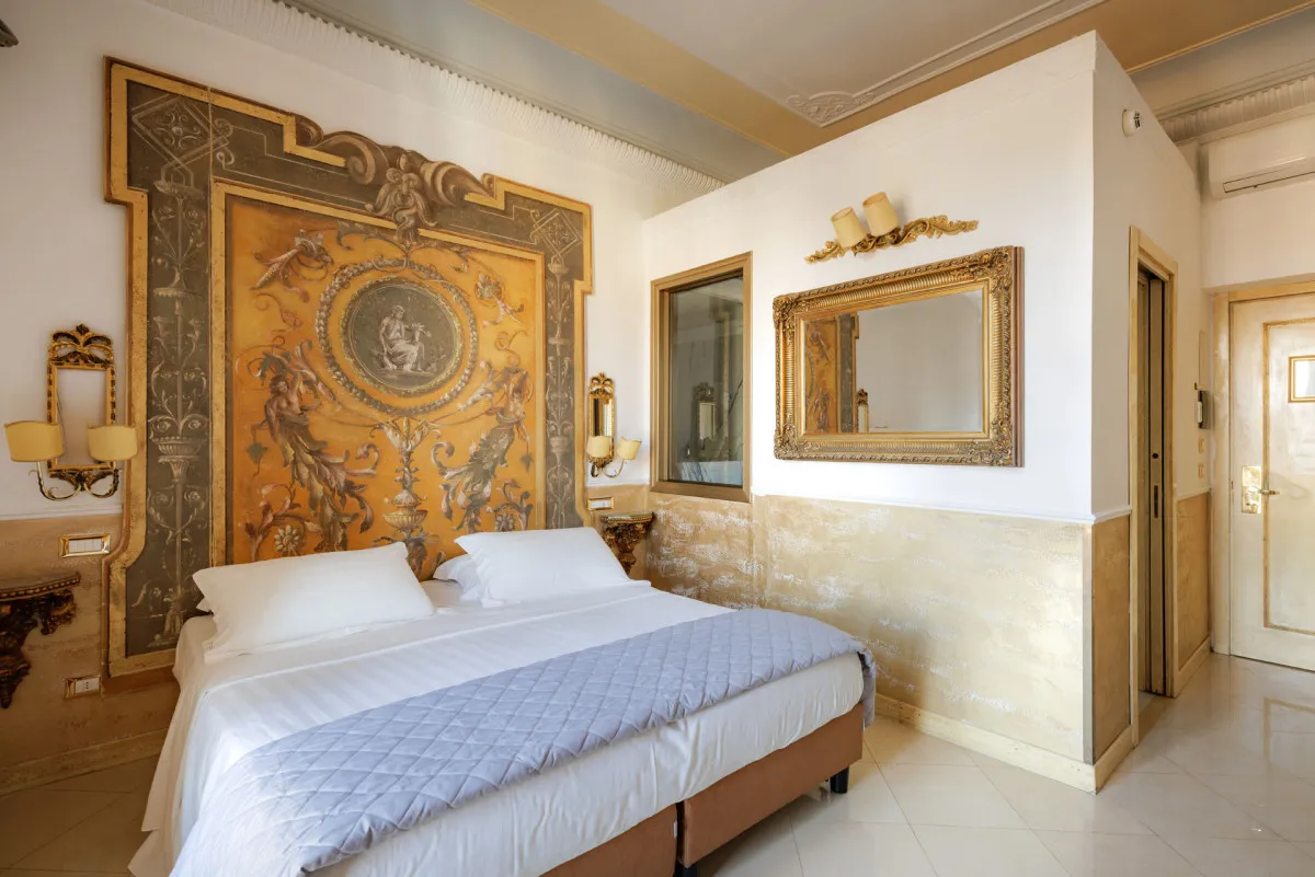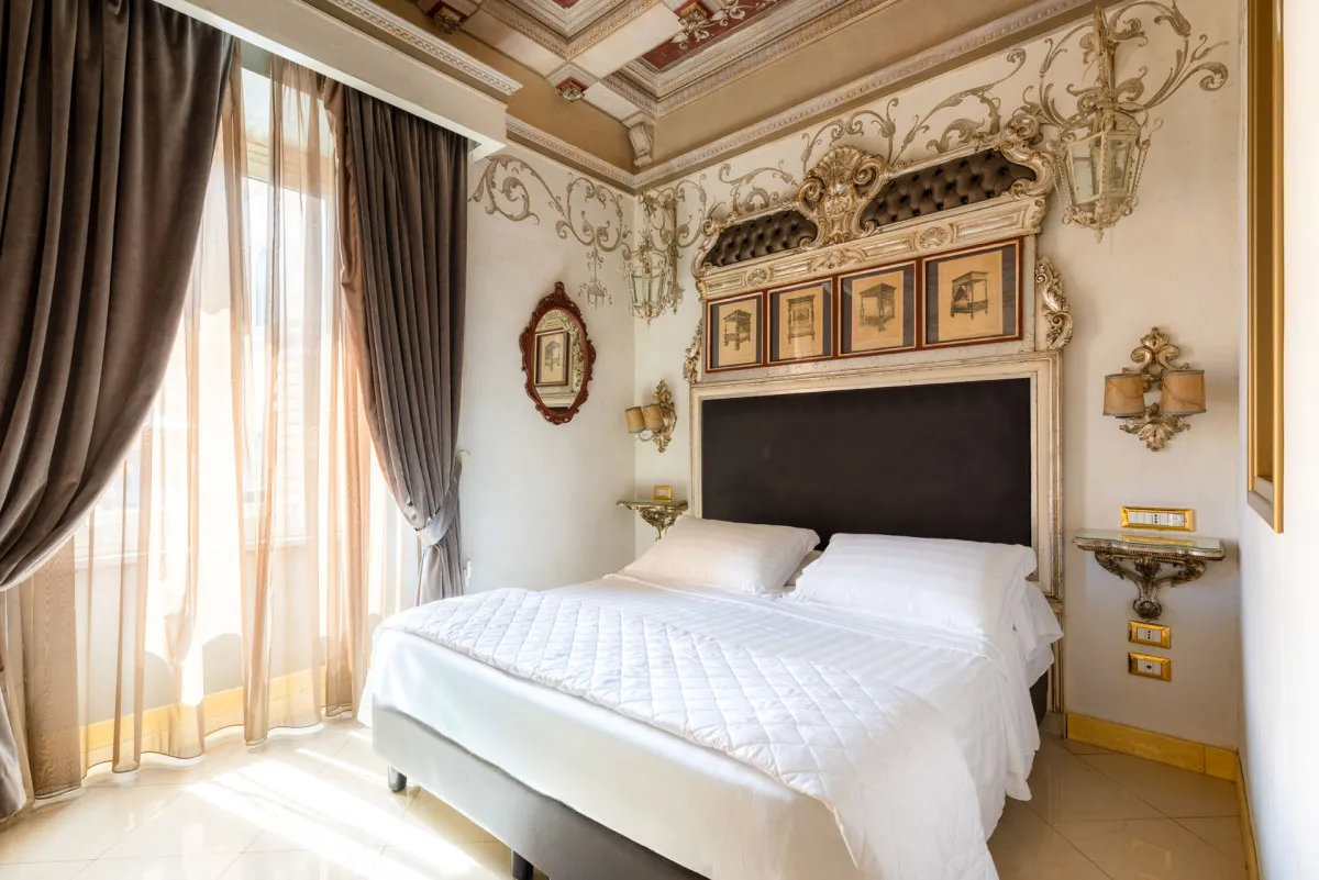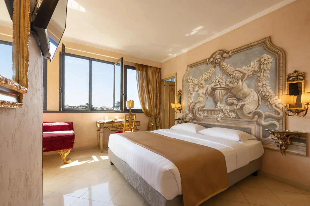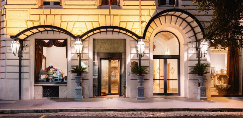 Romanico Palace Luxury Hotel & Spa 5* – отель в имперском стиле, расположенный в центре Рима в здании XIX века. Всего в нескольких шагах находятся такие достопримечательности, как улица Виа Венето, площадь Барберини, Испанская лестница, фонтан Треви, вилла и галерея Боргезе. Интерьеры отеля украшает антикварная мебель, картины и зеркала в позолоченных рамах, статуи античных богов и фрески с изображениями римских императоров.