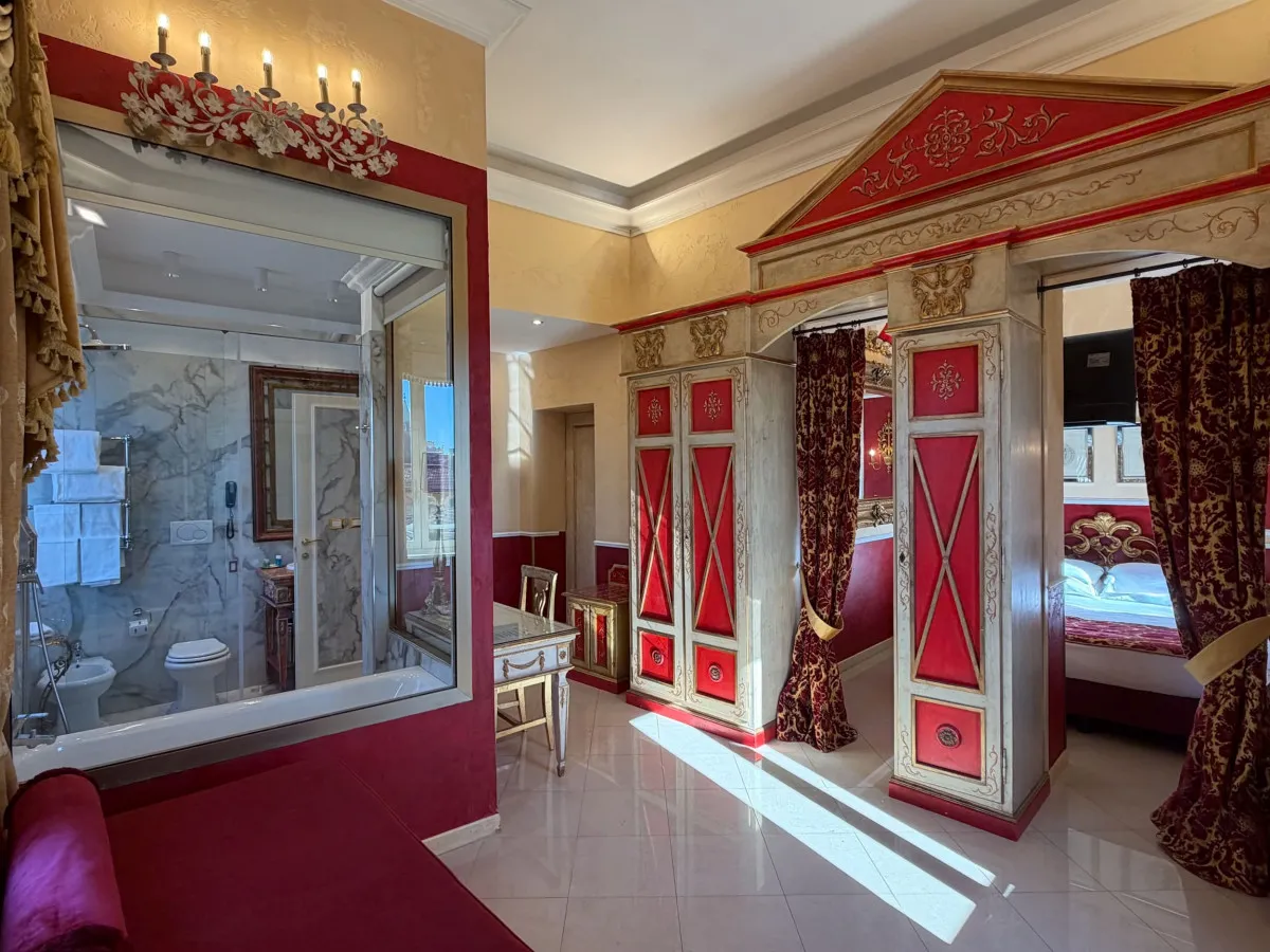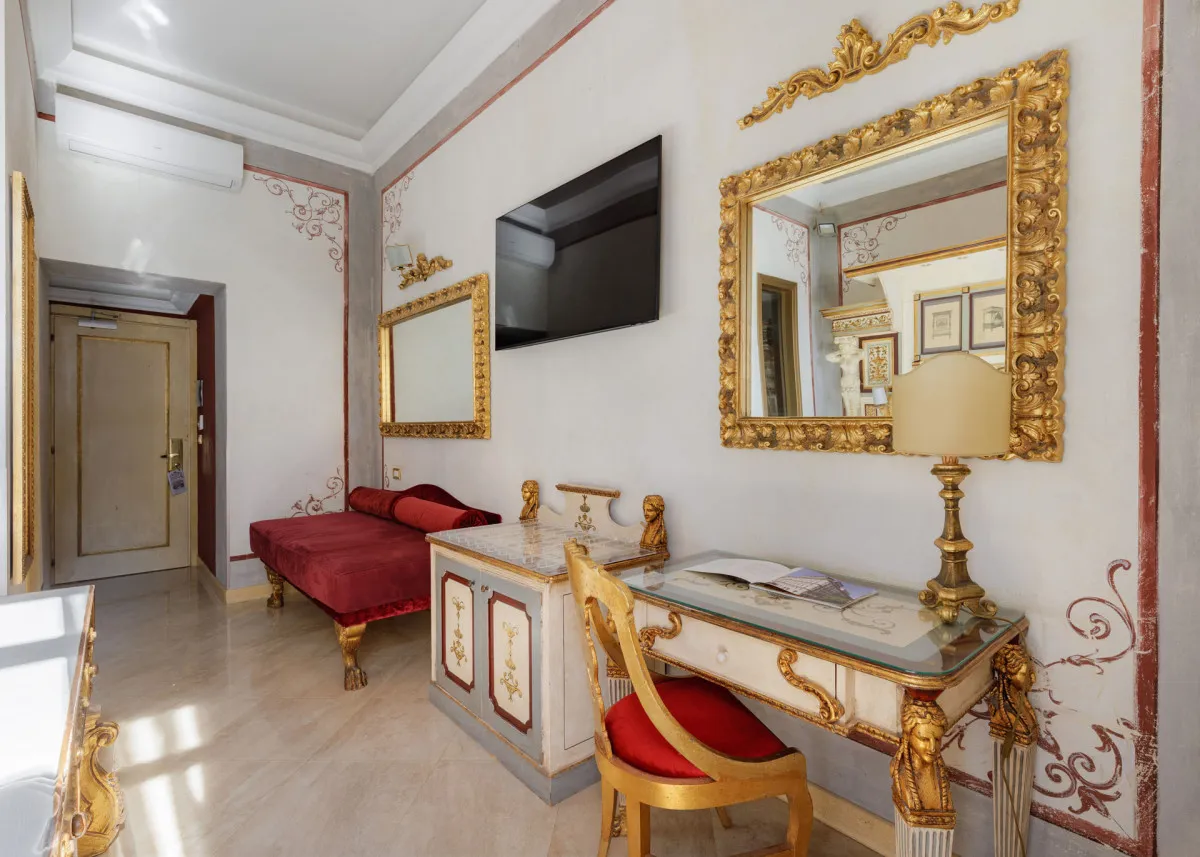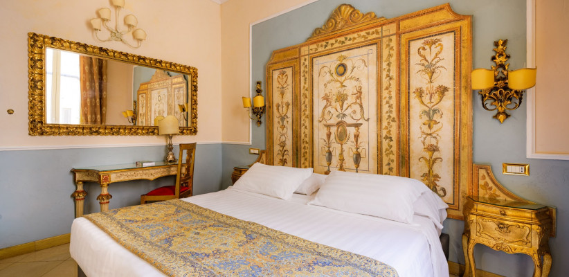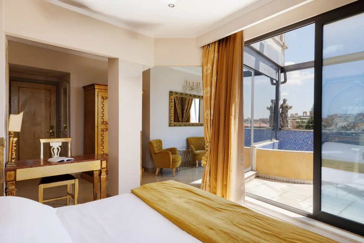 Romanico Palace Luxury Hotel & Spa 5* – отель в имперском стиле, расположенный в центре Рима в здании XIX века. Всего в нескольких шагах находятся такие достопримечательности, как улица Виа Венето, площадь Барберини, Испанская лестница, фонтан Треви, вилла и галерея Боргезе. Интерьеры отеля украшает антикварная мебель, картины и зеркала в позолоченных рамах, статуи античных богов и фрески с изображениями римских императоров.