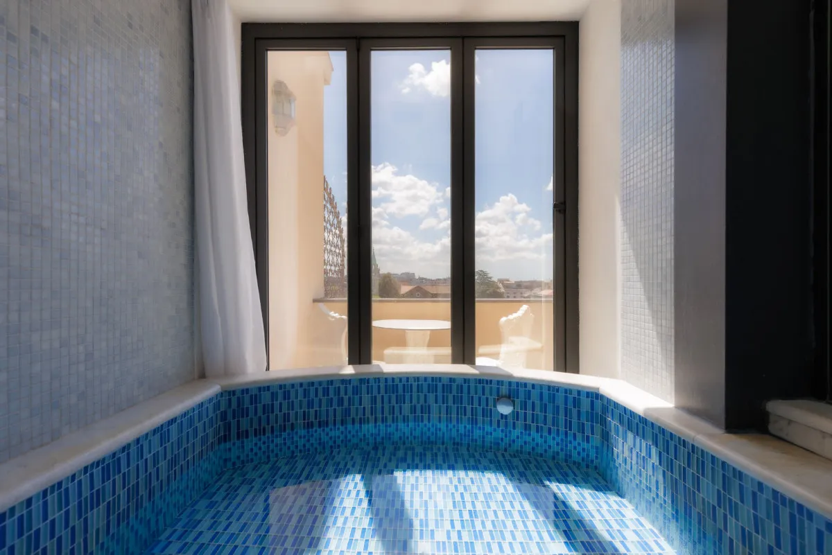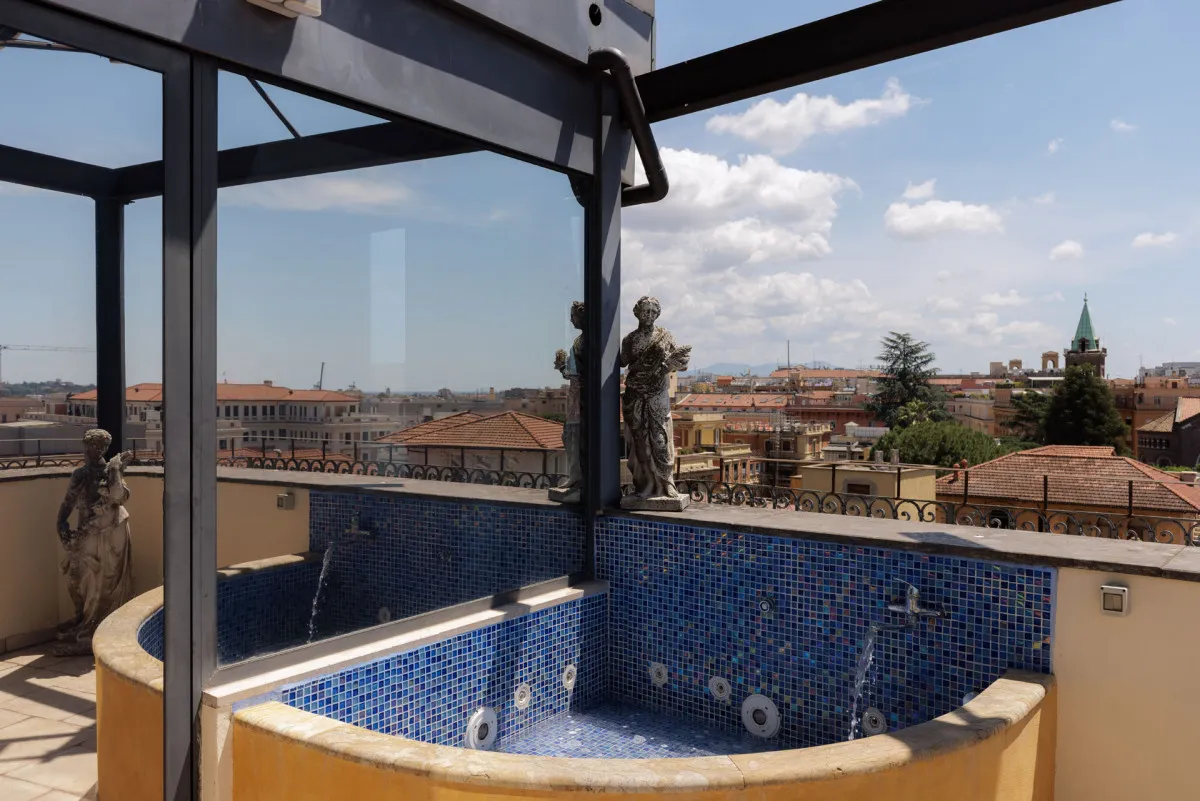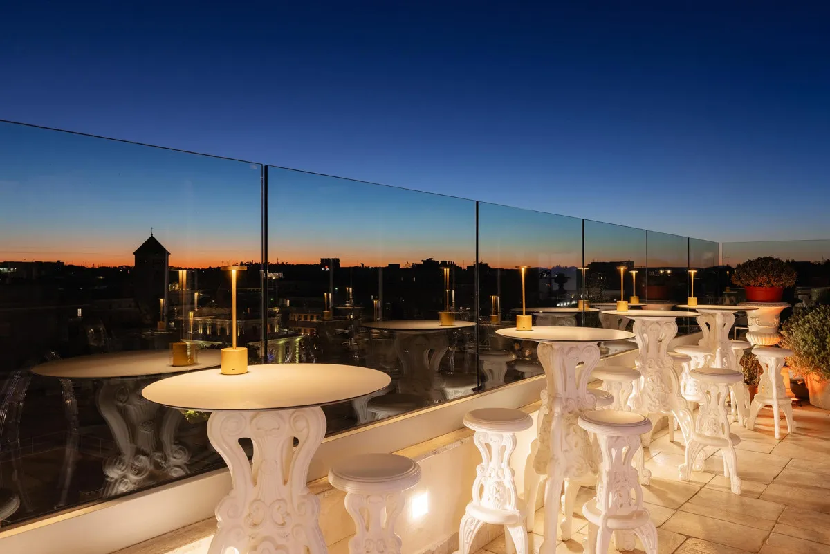 - Видовая терраса на крыше отеля с видом на Рим, где подают завтрак, фирменные коктейли и итальянские деликатесы.