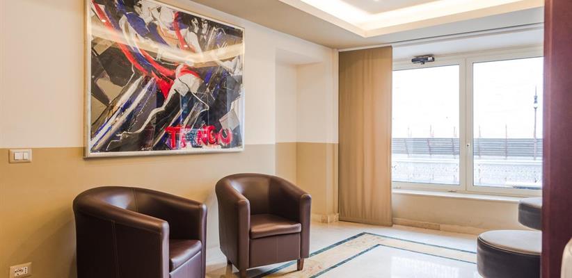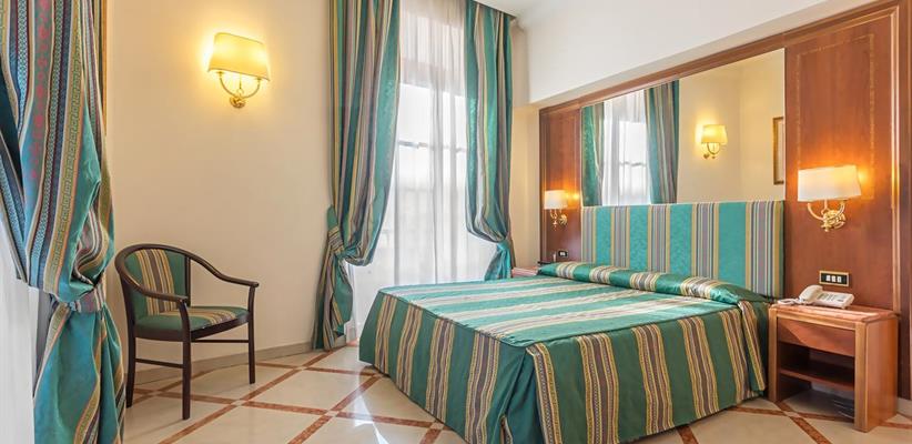 "Вечный город" Рим ежедневно посещают тысячи туристов со всего света, жаждущих удовольствия как от созерцания древнейших памятников архитектуры, так и от посещения многочисленных магазинов итальянской столицы. И тех, и других путешественников готов радушно принять отель Siracusa, расположенный в самом центре Рима, напротив железнодорожной станции Термини. Светлое семиэтажное здание вмещает более ста сорока номеров, размеры которых варьируются. Интерьерное решение комнат отличается четкостью и сдержанностью линий. Светлые стены рождают ощущение пространства, которое уравновешивается лаконичными очертаниями довольно массивной деревянной мебели. Единое цветовое решение штор, покрывал и отдельных элементов обстановки придают внутреннему убранству комнат целостность и особый уют.