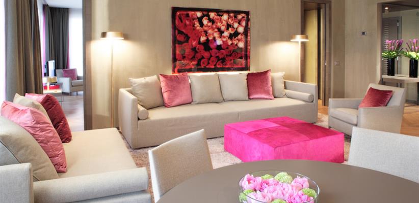 346 номеров и люксов элегантно обставлены, каждый из них отличается неповторимым стилем. В оформлении преобладают розовый, золотой и павлиний синий цвета, что делает каждый номер оазисом спокойствия вдали от бурлящей энергии Милана. Из некоторых номеров открывается романтический вид на Дуомо, что дополняет волшебную атмосферу отеля. Уютные гостиные, изысканная деревянная отделка, роскошный бархат и ценные произведения искусства, украшающие интерьер отеля, дополняют атмосферу. Великолепный декор с акцентами в золотых и розовых тонах отражает истинное итальянское мастерство.Presidential Suite