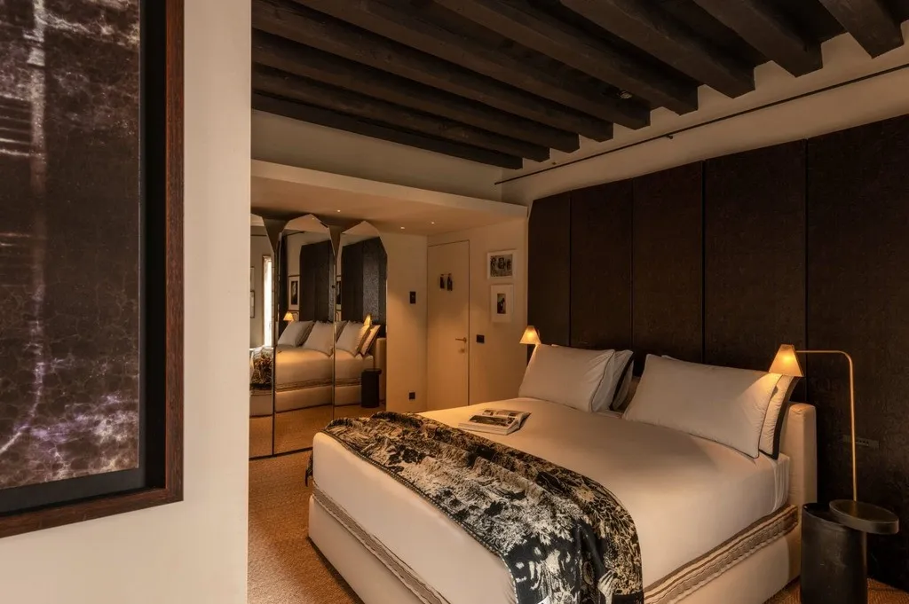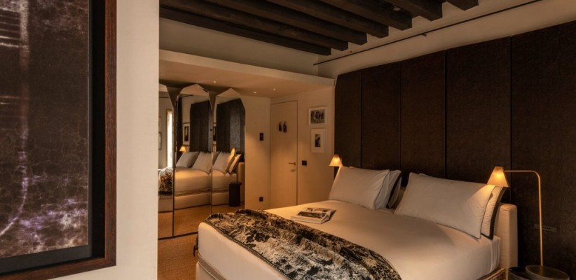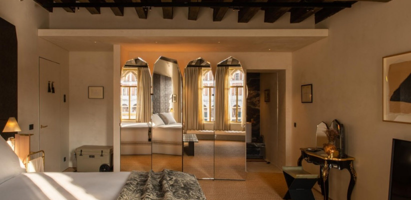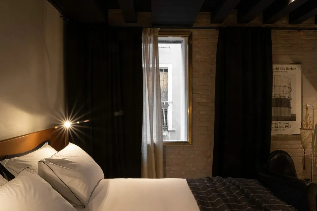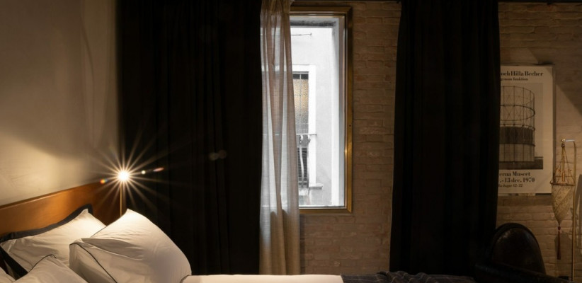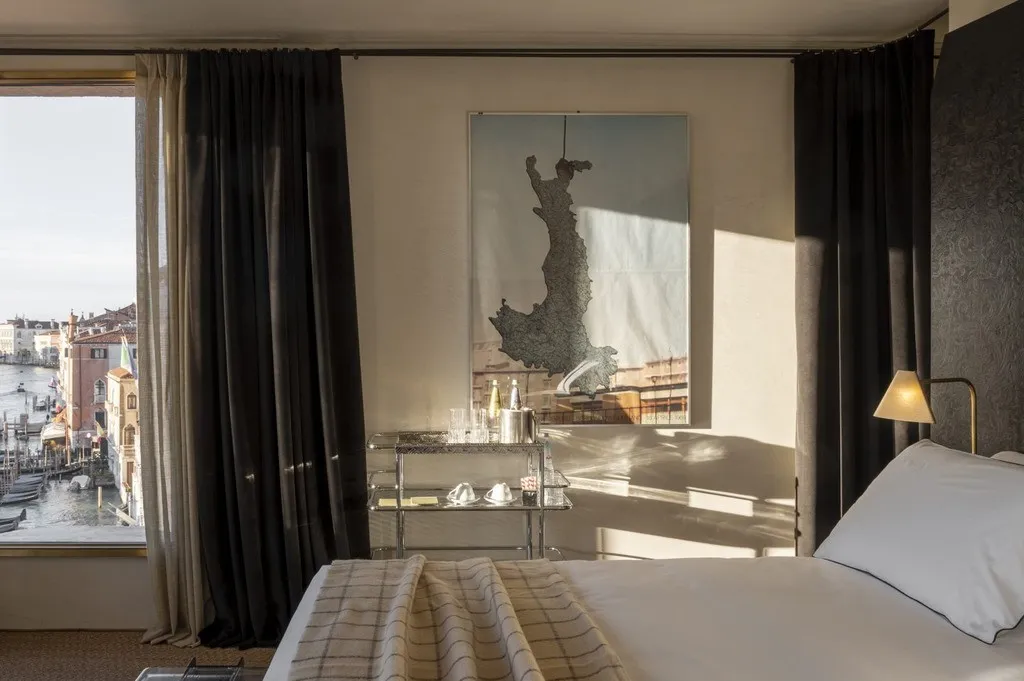 Отель The Venice Venice расположен в историческом палаццо с видом на Гранд-канал, гармонично сочетая архитектурное наследие Венеции с современным арт-дизайном. Интерьеры построены на контрастах: грубоватые фактуры и открытые поверхности соседствуют с антикварными деталями, мрамором, авторскими арт-объектами и мягким светом, создающим камерную атмосферу.