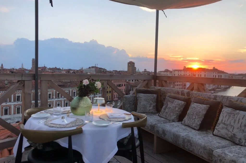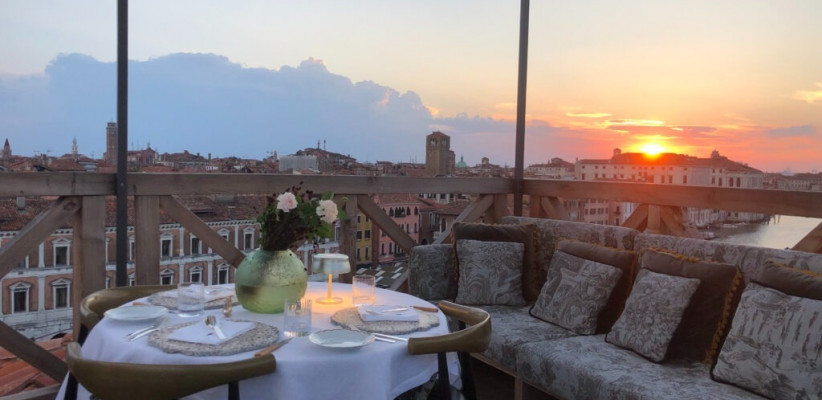- На крыше отеля расположена терраса-альтана – идеальное место для приватных мероприятий, «честных» вечеринок только для своих или романтического предложения руки и сердца с панорамой 360° на Венецию.