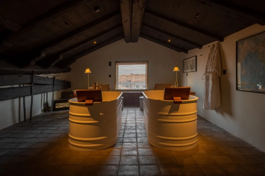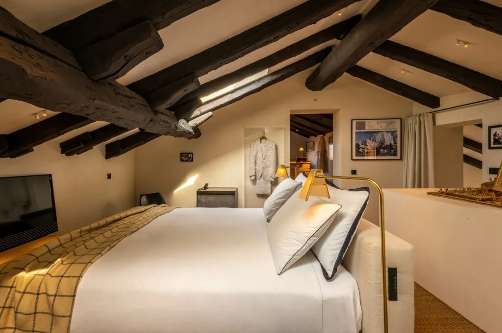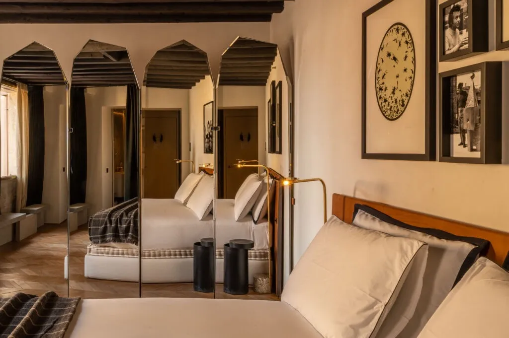 The Venice Venice принадлежит Алессандро Галло и Франческе Ринальдо – основателям легендарного венецианского бренда Golden Goose. Их бунтарский дух и эстетика «идеального несовершенства» полностью воплощены в концепции отеля. Это не просто отель, а «живой» шоурум. Почти любой предмет, который можно увидеть – от мебели и украшений для дома до одежды и эксклюзивных кед в местном концепт-сторе – можно приобрести в личную коллекцию. Каждый номер The Venice Venice индивидуален: высокие потолки с сохранившимися историческими элементами, авторская мебель, современные арт-объекты и тщательно подобранные текстуры создают атмосферу стильной резиденции. Ванные комнаты отделаны натуральным камнем и оснащены премиальной косметикой. Также отель предлагает прямой выход к Гранд-каналу, а вид на мост Риальто позволяет чувствовать пульс города, не выходя из номера.