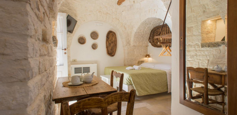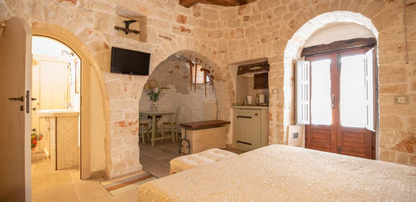 старинный каменный сводчатый дом, состоящий из: гостиной с кухонным уголком, традиционной ниши с диваном, спальни, ванной комнаты с душем. Количество гостей: 2Trulli Comfort