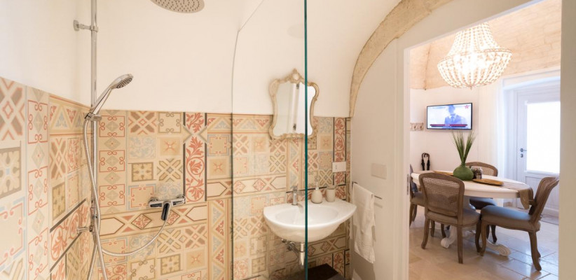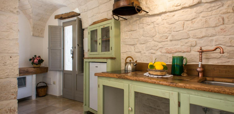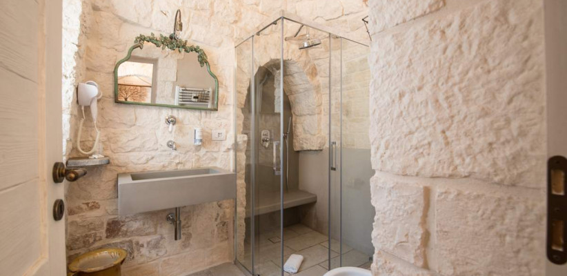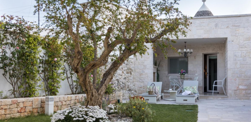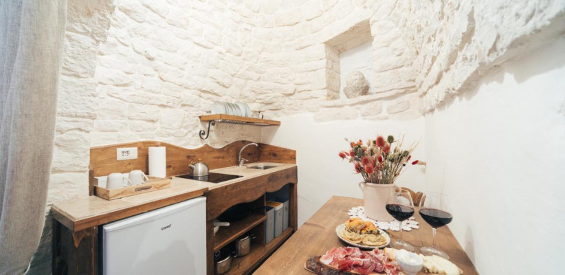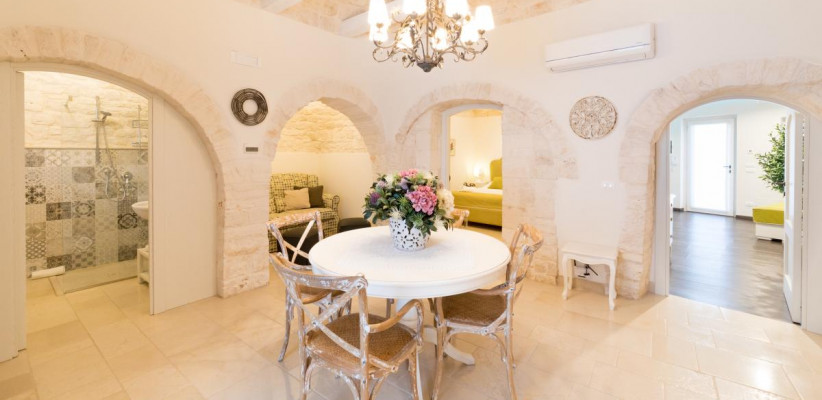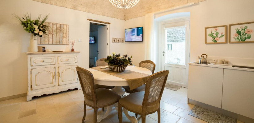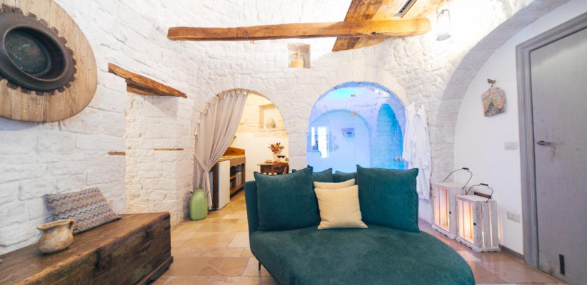 двуспальная кровать, гостиная зона с кухней, ванная комната с душем, собственный внутренний дворик. Количество гостей: 2Trullo Deluxe & Wellness