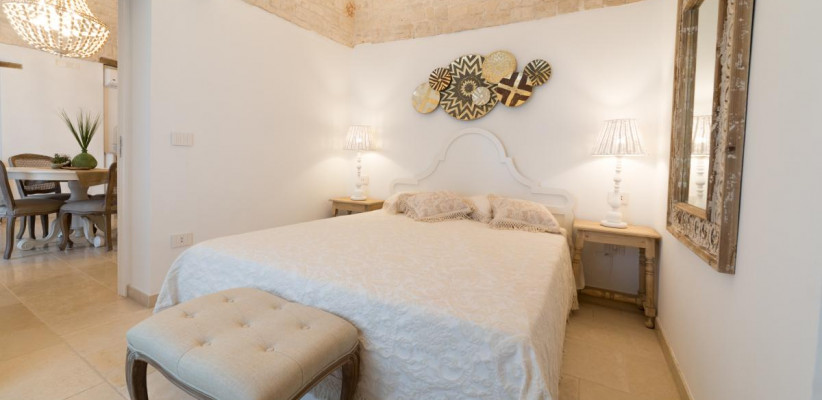 спальня с кроватью размера king-size, гостиная, ванная комната с душем, массажный кабинет, собственный внутренний дворик и джакузи с подогревом. Количество гостей: 2Trullo Melograno Luxury Spa