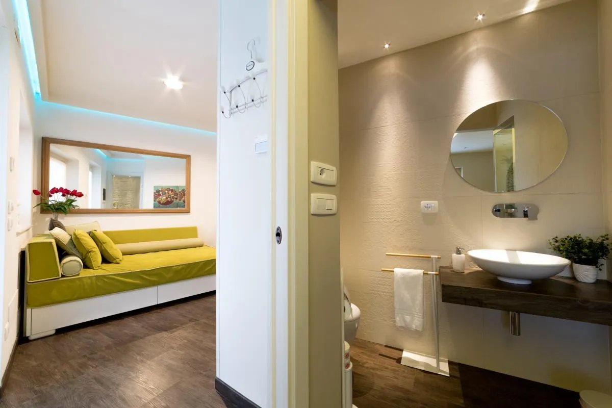 двуспальная кровать, небольшая гостиная зона и ванная комната с душем. Количество гостей: 2Trulli Family Comfort