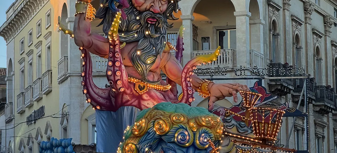Самый известный карнавал на всей Сицилии – тот, что отмечают в Ачиреале. Этот очень красочный и очень музыкальный исторический праздник восходит к XVI веку, когда традиционно устраивали битву апельсинами и лимонами (позже запрещенную). По улицам великолепного исторического центра Ачиреале, выстроенного в стиле барокко, проходят парады карнавальных героев и повозок с фигурами из папье-маше: помимо гигантских аллегорически-гротескных платформ с подсветкой и сложными механизмами, в парадах участвуют украшенные цветами повозки с фигурами, сделанными полностью только из свежих цветов, и мини-повозки, часто представляющие собой миниатюры гигантских аллегорических платформ, –истинный апофеоз света и цвета.