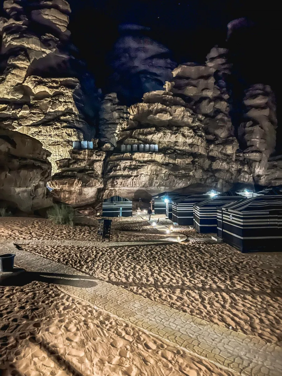 Отель Aladdin Luxury Camp расположен в самом сердце пустыни Вади-Рам – охраняемой природной зоны Иордании, известной своими красными дюнами, величественными скальными массивами и необычайно чистым звездным небом. Локация кемпа позволяет гостям оказаться в полной тишине пустыни, вдали от городского света и дорог, – прямо среди природного ландшафта, который считается одним из самых красивых в мире. Из каждого тента открываются открытые панорамные виды на горы и песчаные просторы, а рассветы и закаты создают атмосферу, напоминающую другой мир.