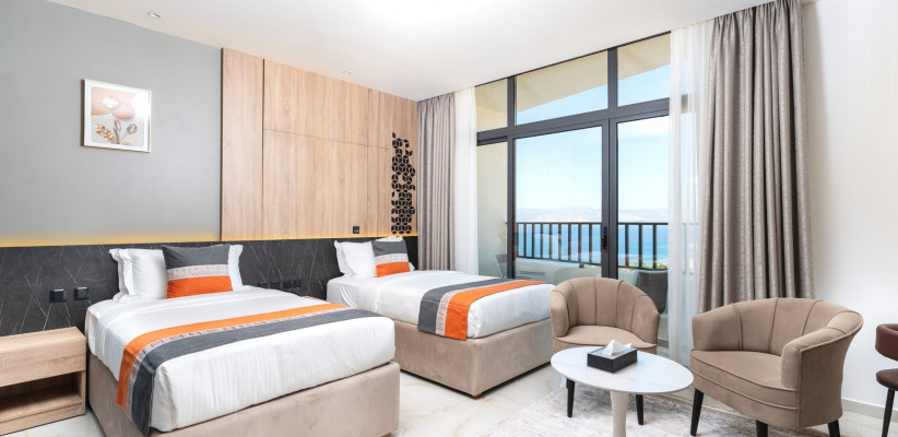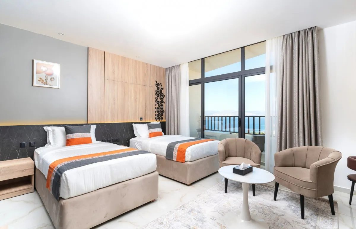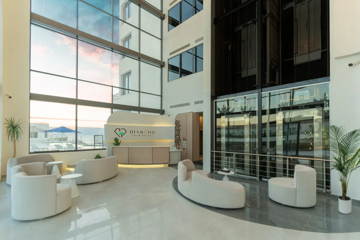 Diamond Palm Hotel & Resort в Акабе расположен в районе Аль-Бурж – удобной зоне между городскими удобствами и пляжами Красного моря. Всего в нескольких минутах ходьбы находится Aqaba Marine Park, рядом – порт города и основные прогулочные маршруты вдоль побережья. Такое расположение позволяет гостям легко сочетать пляжный отдых с городскими развлечениями, не тратя время на долгие переезды.