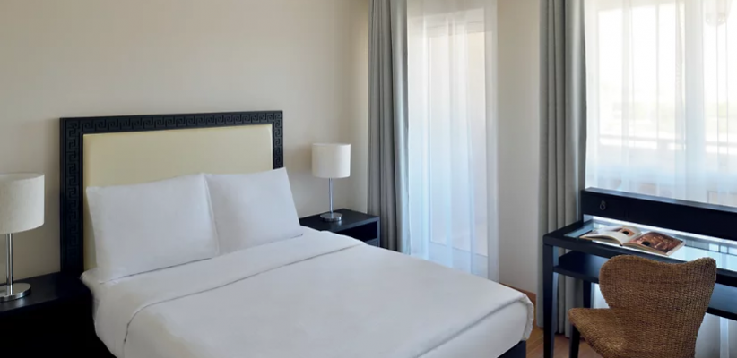 100 м2, балкон с видом на город или бассейн, две комнаты, гостиная, обеденная зона, количество гостей: 6