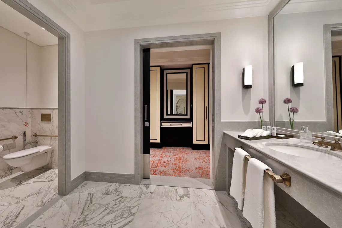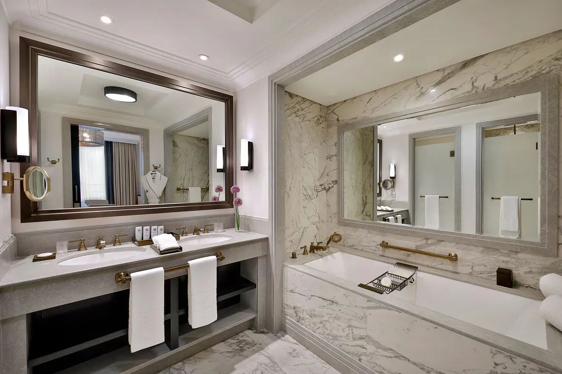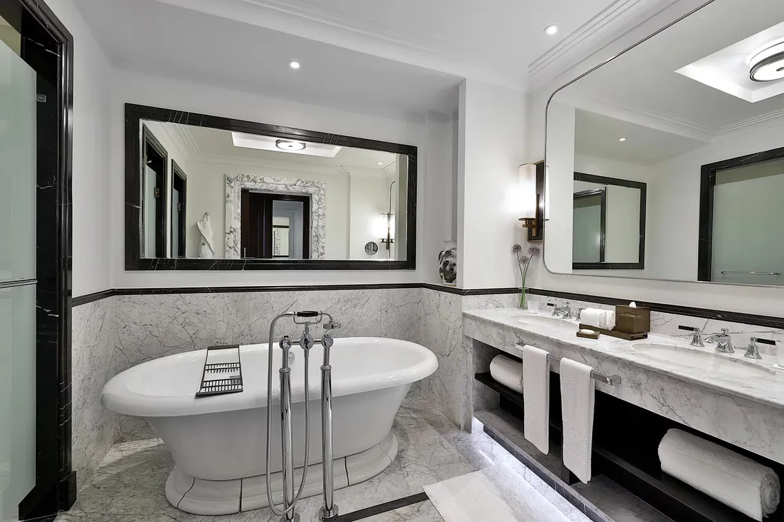 139 м2, вид на город, двуспальная кровать, гостиная с обеденной зоной, мини-кухня, гардеробная, ванная комната, гостевой санузел. Расположены на верхних этажахJohn Jacob Astor Suite