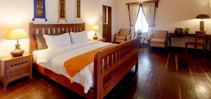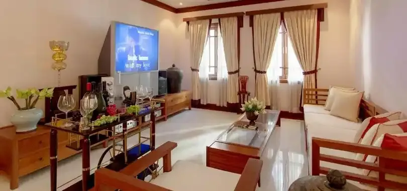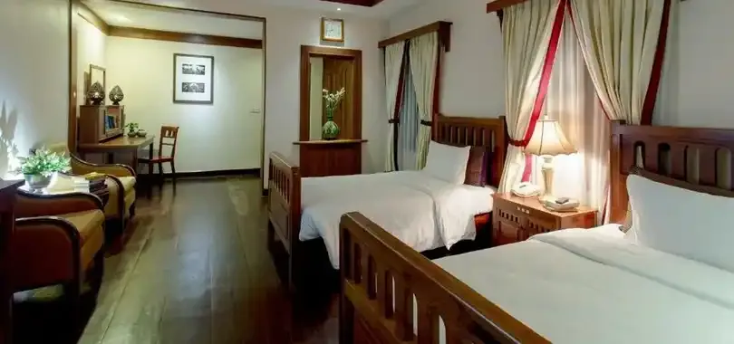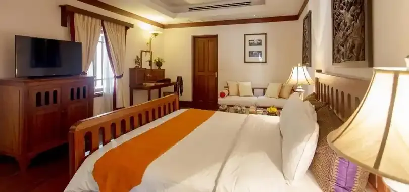 38 м2, балкон с видом на тропический сад и бассейн или на кхмерскую культурную деревню, двуспальная кровать или две односпальные кровати, зона отдыха с диваном, ванная комната с душем и ванной с джакузиSakura Room