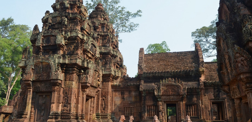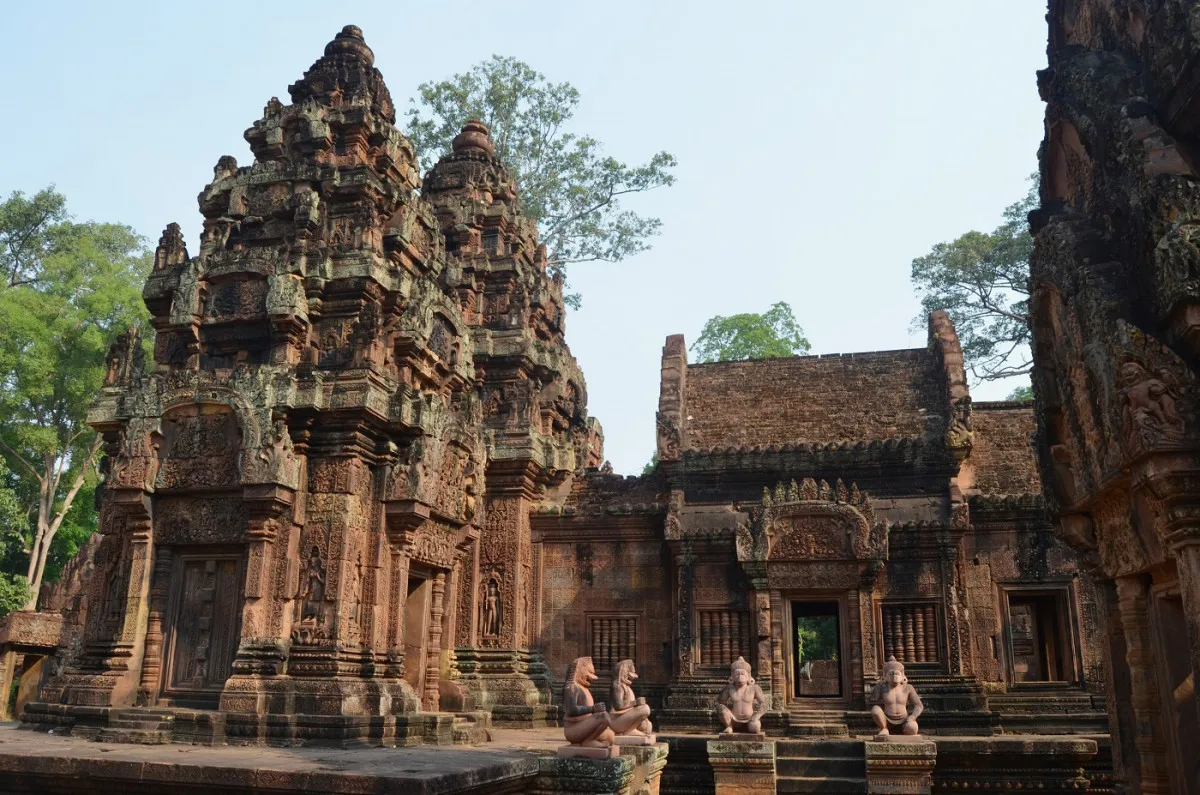 - оцените уровень работы мастеров в изысканном храме из розового песчаника Бантэй срэй