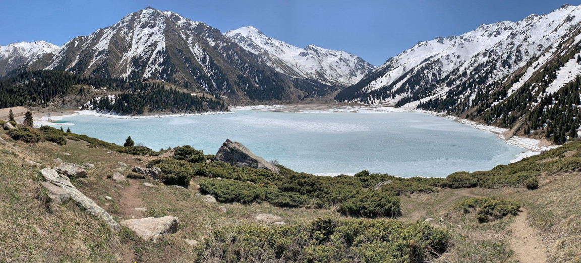 Большое Алматинское озеро находится на высоте 2511 метров. Летом к нему открыты пешеходные маршруты, как для начинающих, так и для опытных туристов.