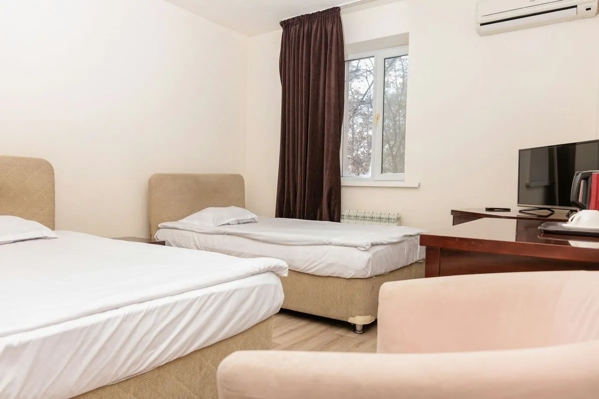 Гостиница представляет собой комфортное и спокойное место для проживания, расположенное в непосредственной близости от аэропорта. Номера отличаются современным оформлением, простором и оснащены всем необходимым для удобного и приятного пребывания. Удачное расположение обеспечивает быстрый доступ к аэропорту. Расстояние до международного аэропорта составляет около 700 метров, до железнодорожного вокзала Алма-Ата 1 можно добраться примерно за 15 минут, а дорога до центра города также занимает около четверти часа.