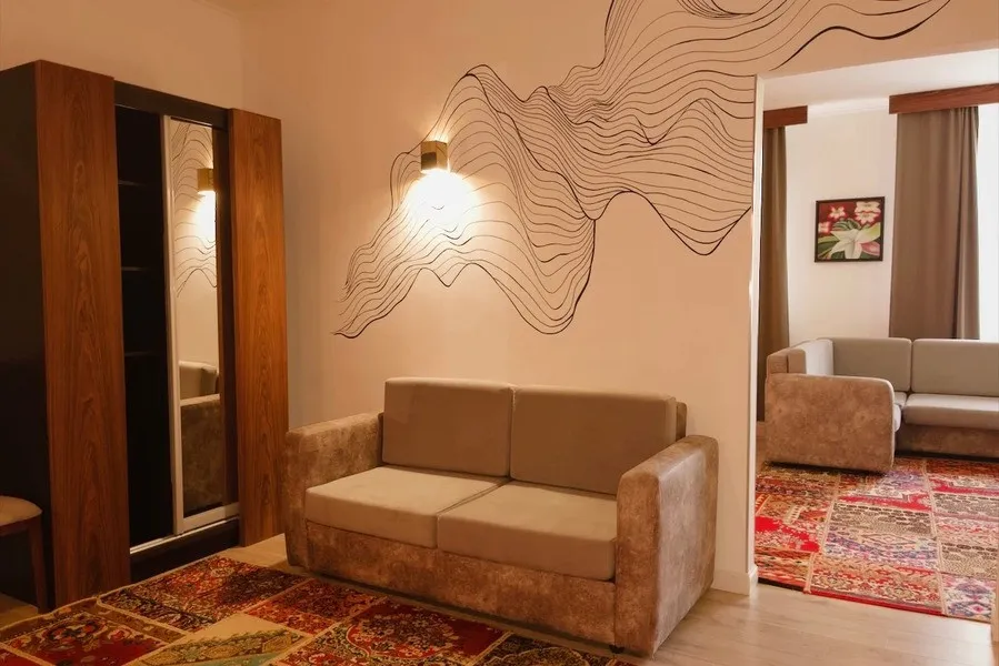 41 м2, спальня с двуспальной кроватью размера king-size, диван-кровать, гостиная зона. Максимальное количество гостей: 4.