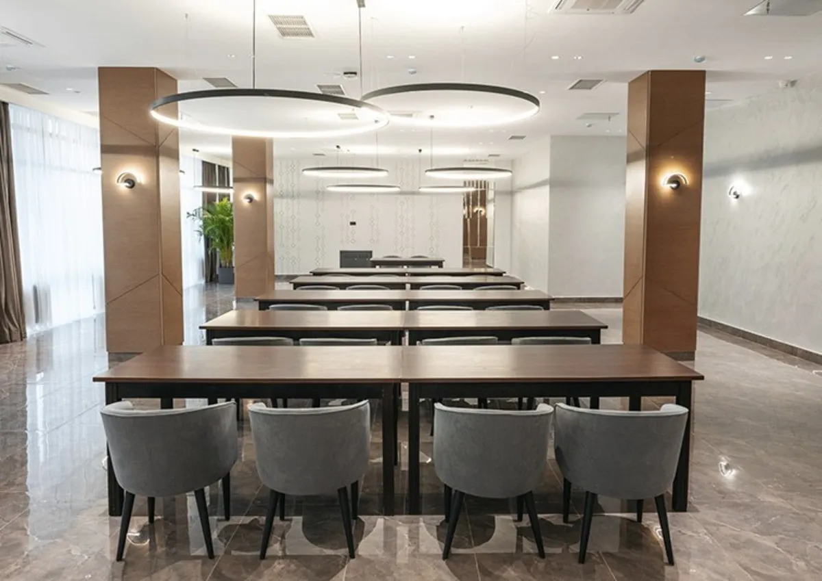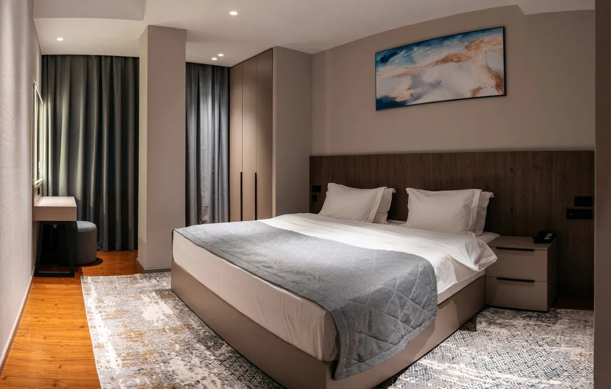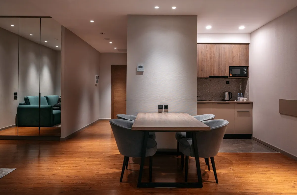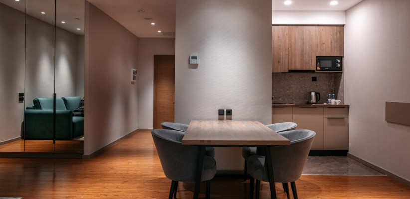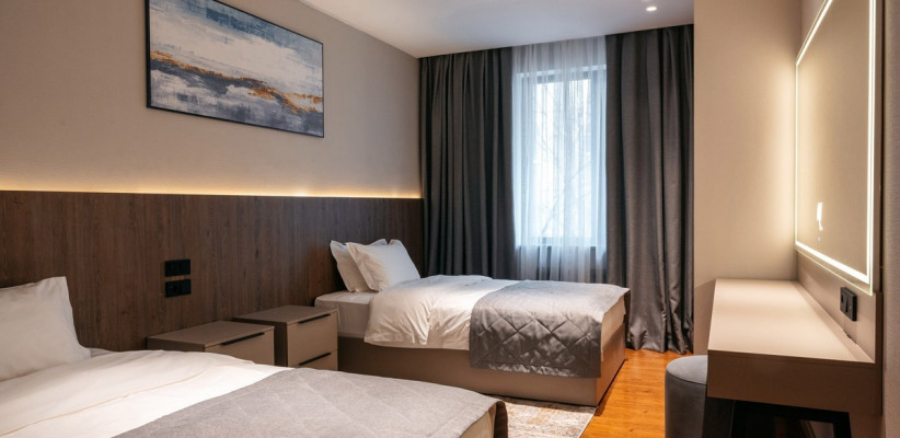 Raavah Aparthotel, Алматы – это современный апарт‑отель бизнес‑класса, сочетающий комфорт домашних апартаментов и сервис полноценного отеля. Он предлагает просторные апартаменты категорий Deluxe и Luxe с полностью оборудованной кухней, уютной гостиной, обеденной и рабочей зонами, а также ванными комнатами, что делает его идеальным вариантом как для деловых поездок, так и для длительного проживания с семьей. Для туристов доступны тренажерный зал, конференц-залы для деловых встреч, кофейня с меню a la carte и ежедневный завтрак “шведский стол”. Расстояние до аэропорта Алматы составит около 28 км.