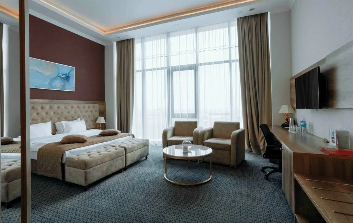 Ramada By Wyndham Shymkent – современный отель международного уровня в деловой части Шымкента. Туристам предлагаются стильные номера, ресторан, СПА-центр и фитнес-центр, а также высокий уровень сервиса. Подходит как для деловых поездок, так и для комфортного отдыха. Расстояние до аэропорта Шымкент может составить около 13 км.
