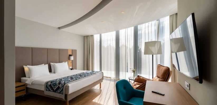 Sadu Hotel Almaty – стильный городской отель категории бренда Radisson Individuals, расположенный в перспективном районе Алматы. Отель сочетает современную архитектуру, продуманный дизайн и спокойную атмосферу, создавая комфортные условия для отдыха и деловых поездок. Благодаря близости к Esentai Mall, ботаническому саду, деловым центрам и видам на горы, отель подходит как для путешествий, так и для спокойного отдыха в ухоженной городской среде. На территории представлены ресторан международной кухни, круглосуточный лобби-бар, сезонный открытый бассейн, СПА-центр с оздоровительными процедурами и удобства для проведения мероприятий. Просторные номера оборудованы современной техникой и удобствами для длительного проживания. Расстояние до международного аэропорта Алматы им. Абылай хана (ALA) составит около 20 км.