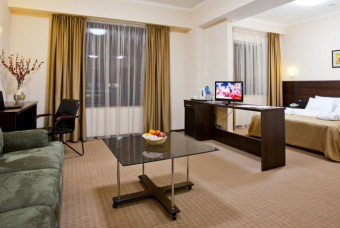 Четырехзвездочный отель в Алматы предлагает комфортное размещение, но отсутствуют данные о предоставляемых удобствах.