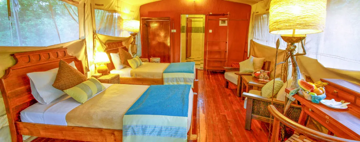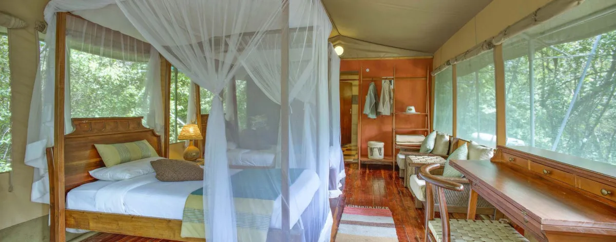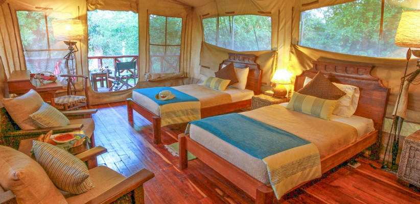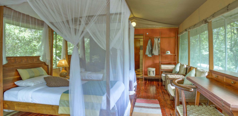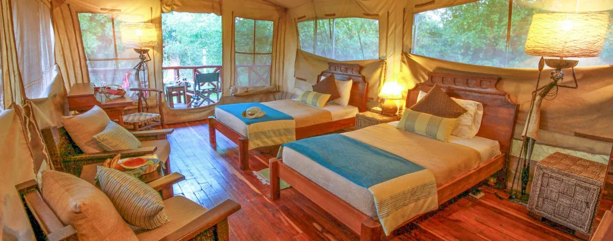 сафари-тент: веранда, вид на реку Талек, спальня с двуспальной кроватью, двумя или тремя односпальными кроватями. Количество гостей: до 3Superior Tent