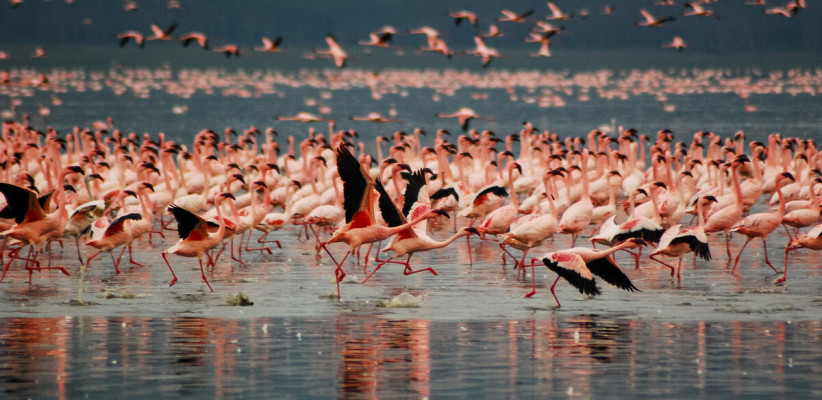Вечернее сафари. Несмотря на небольшую площадь, всего 188 км2, этот парк стал своеобразной Меккой для любителей птиц. Здесь обитает 450 видов пернатых. Это один из немногих национальных парков на Земле, созданных с целью сохранения птиц, в частности фламинго. Единовременно на этом соленом озере собирается до 2 млн. малых фламинго, что составляет 1/3 всей мировой популяции этих птиц, и до полумиллиона пеликанов. Тогда гладь озера буквально покрыта бело-розовым покрывалом. Количество фламинго на озере непостоянно и зависит от уровня воды. Помимо фламинго и пеликанов на озере гнездятся бакланы, марабу, орланы-крикуны, грифы, зимородки и др.
