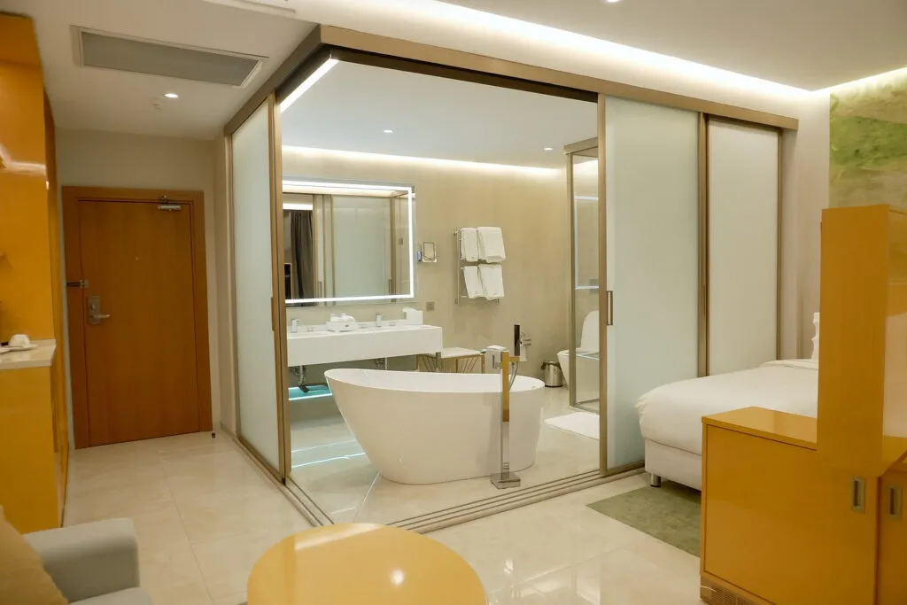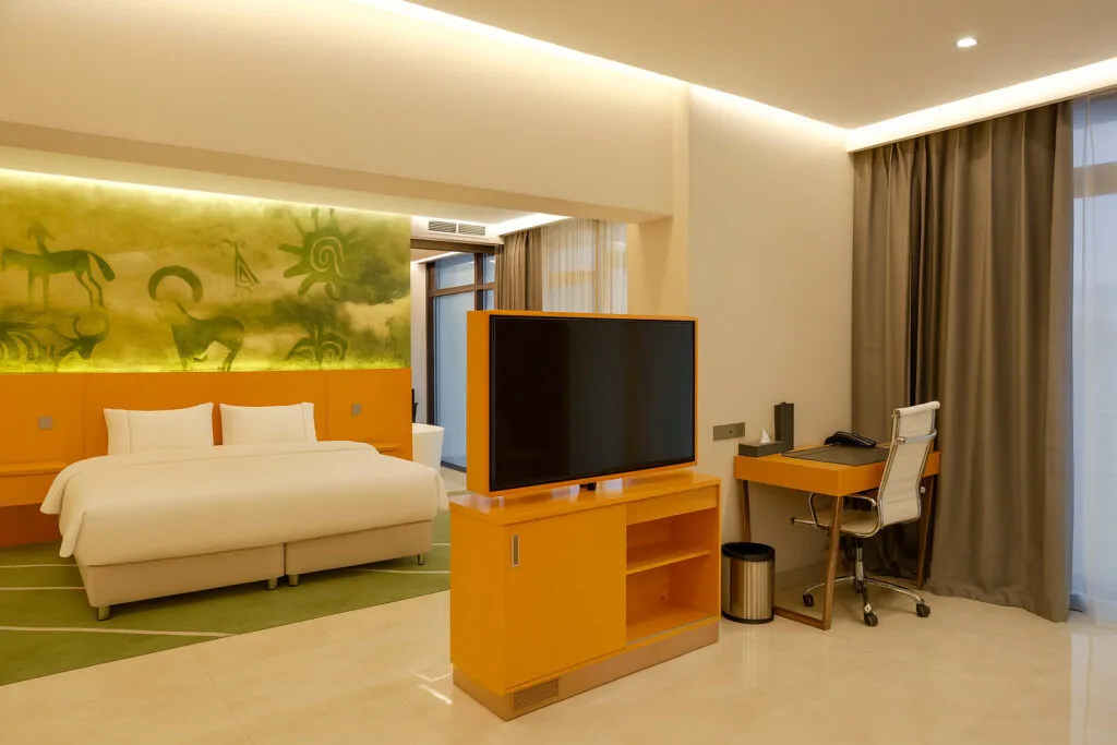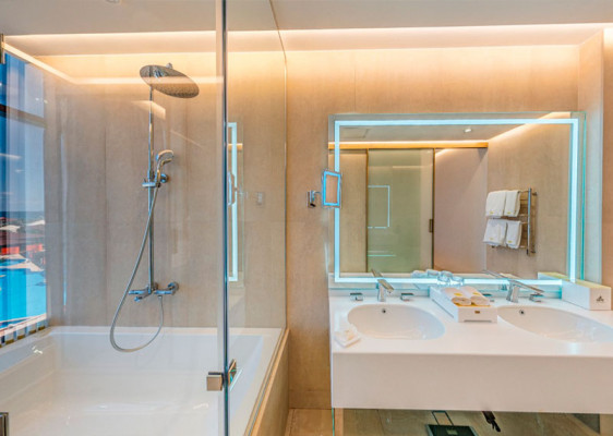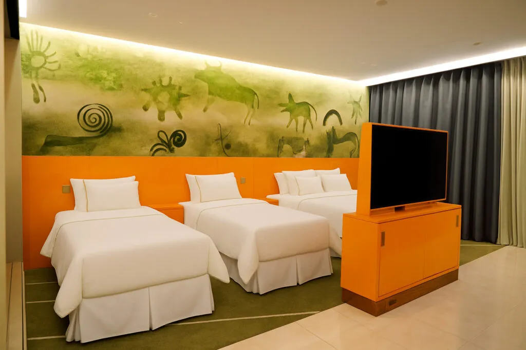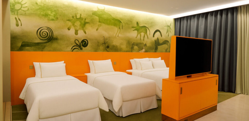 две двуспальные кровати или четыре односпальные кровати, гостиная зона с диваном. Максимальное количество гостей: 4 (2 взрослых + 2 детей)Президентский люкс