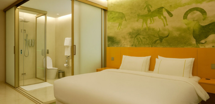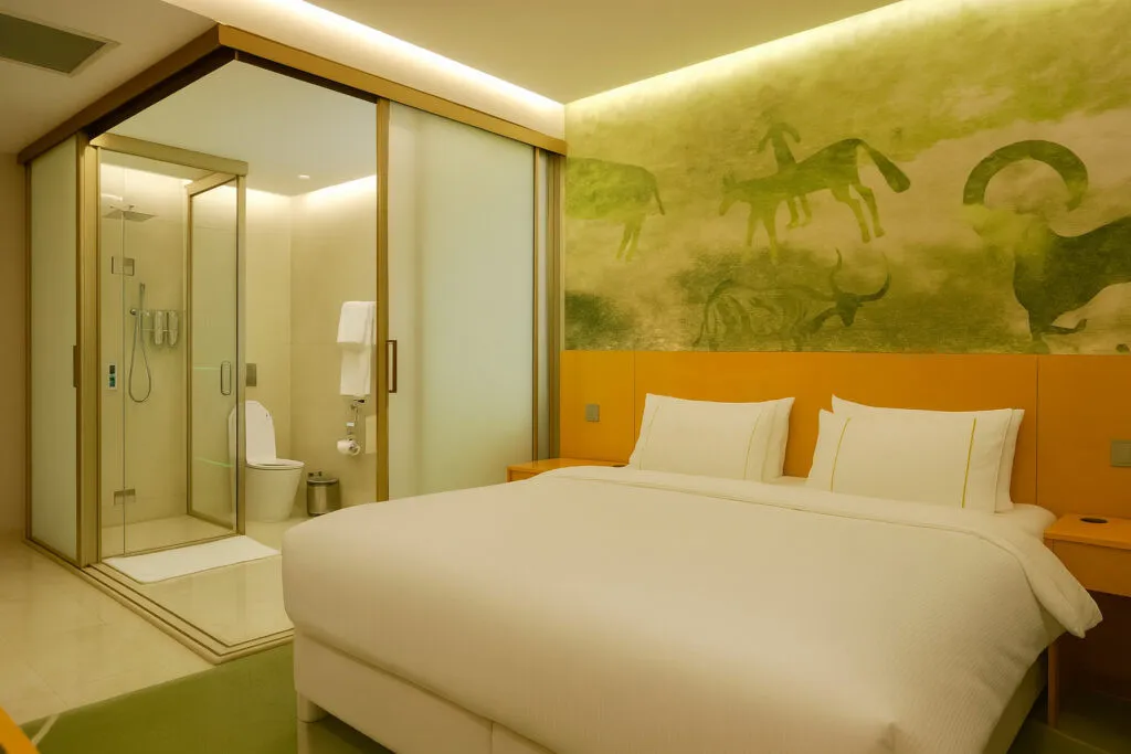 вид на озеро и горы, двуспальная кровать, зона отдыха с раскладным диваном. Максимальное количество гостей: 3 (2 взрослых + 1 ребенок)Люкс