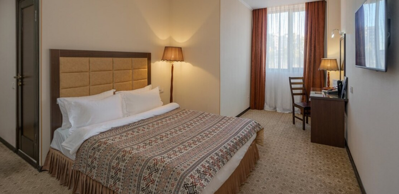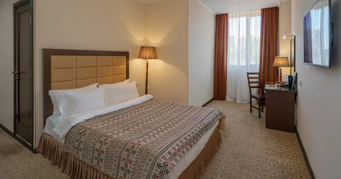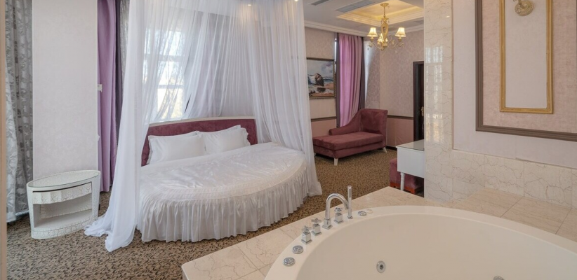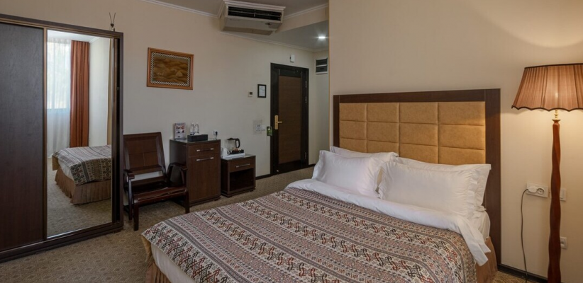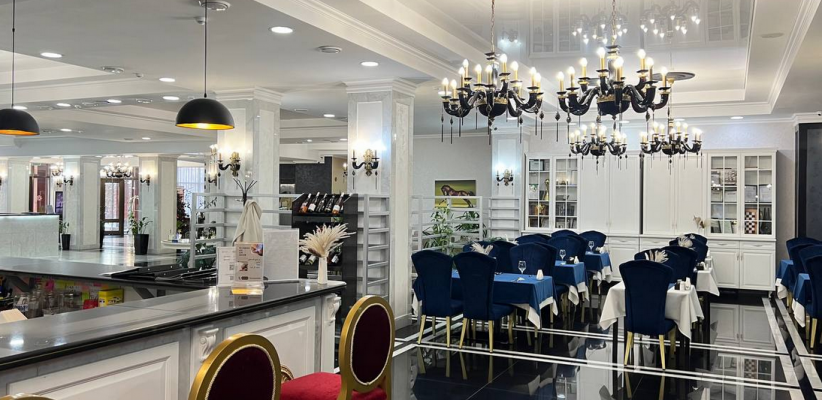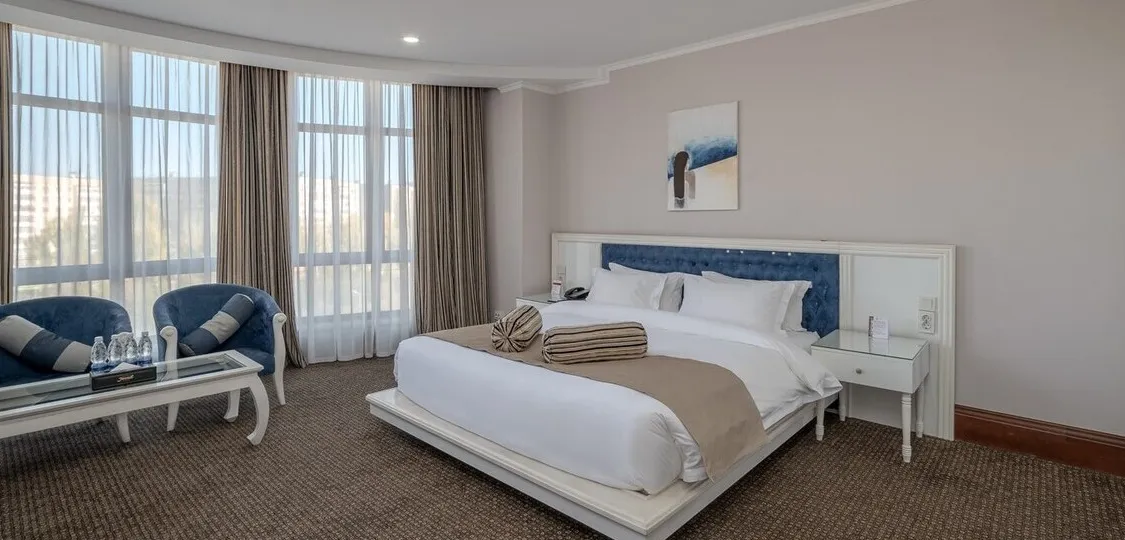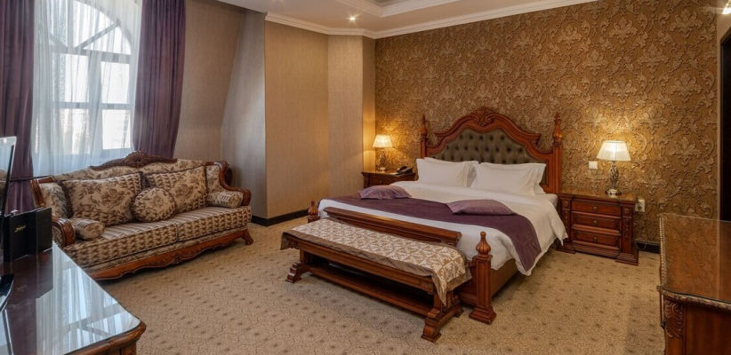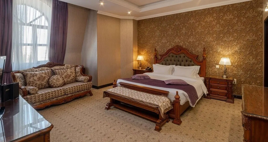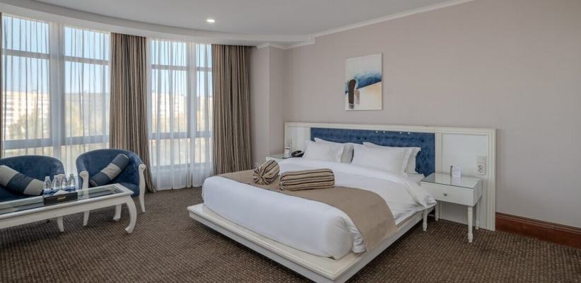 Отель расположен в южной части города Бишкек, в экологически чистой жилой зоне. Интерьер отеля выдержан в классическом элегантном стиле с мягкими пастельными оттенками и комфортной атмосферой.