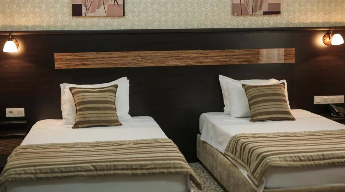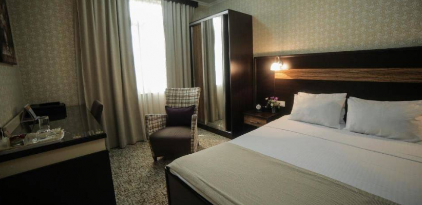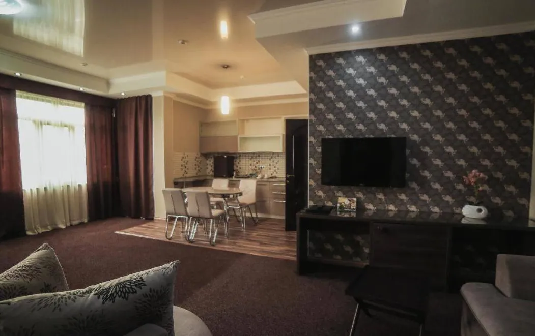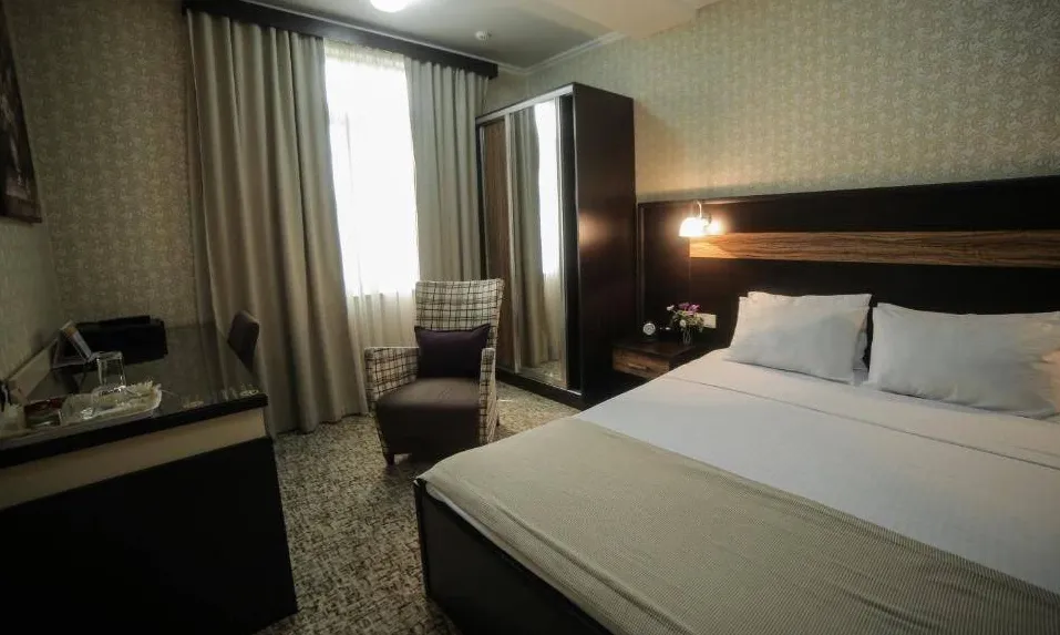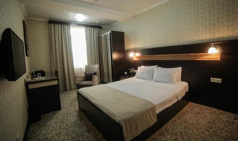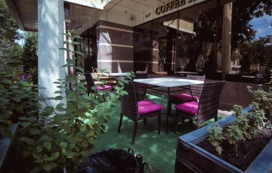 Отель расположен в центральной части города, что обеспечивает удобный доступ к деловым и культурным районам. Интерьеры отеля стильные, современные, с акцентом на комфорт и деловую атмосферу. До международного аэропорта Манас (международный аэропорт) примерно 24–30 км.