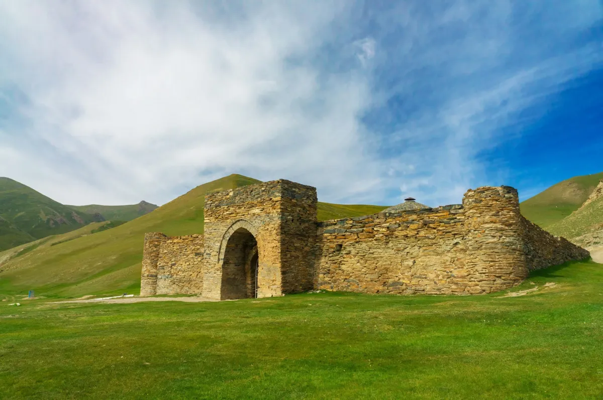 После завтрака мы направляемся в караван-сарай Таш-Рабат (3200 м), датируемый примерно X веком. После интересной исторической экскурсии мы возвращаемся в город Нарын и продолжаем путь к высокогорному озеру Сон-Куль (3016 м) через перевал Молдо-Ашуу.
