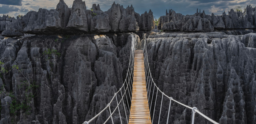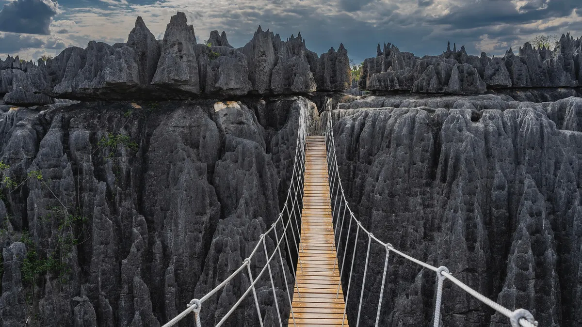 Парк Цинги де Бемараха – объект Всемирного наследия ЮНЕСКО, знаменитый своими «цинги»: гигантскими остроконечными известняковыми башнями высотой до 50 метров. Эта уникальная каменная крепость, миллионы лет назад бывшая морским дном (о чем свидетельствуют окаменелости в песчанике), сегодня служит домом для редких лемуров, птиц и эндемичных растений. Большая часть парка закрыта для посещения, но доступные маршруты предлагают незабываемое приключение. Прогулка по ним требует определенной физической подготовки: вам предстоит протискиваться в узких лазах, карабкаться вверх и спускаться по лестницам. Для вашей безопасности каждому посетителю выдается защитный шлем (включен в стоимость).