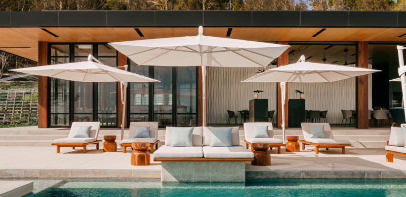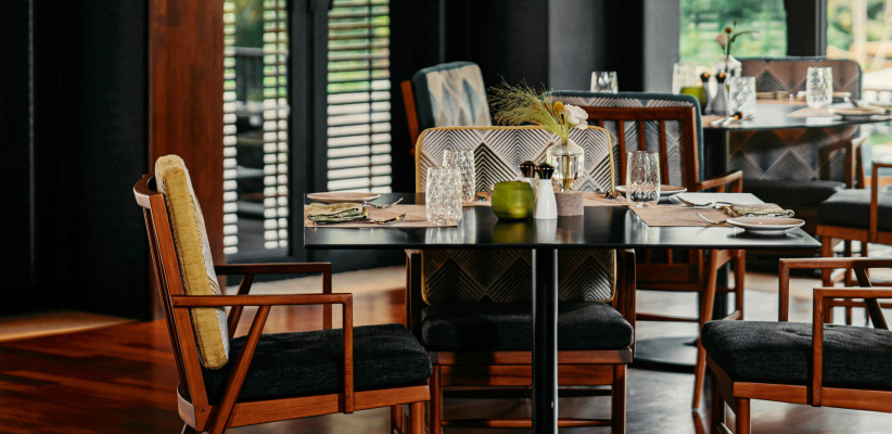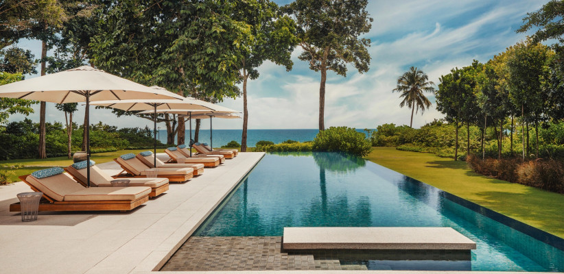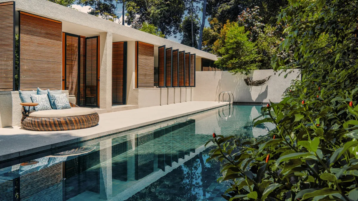 Курорт объединяет 44 продуманно спроектированных сьюта и одну приватную виллу, каждая из которых органично вписана в природный ландшафт. Архитектура от Kerry Hill Architects подчёркивает связь с окружающей средой: натуральные текстуры, мягкие природные оттенки и детали ручной работы отражают культурное наследие Юго-Восточной Азии.