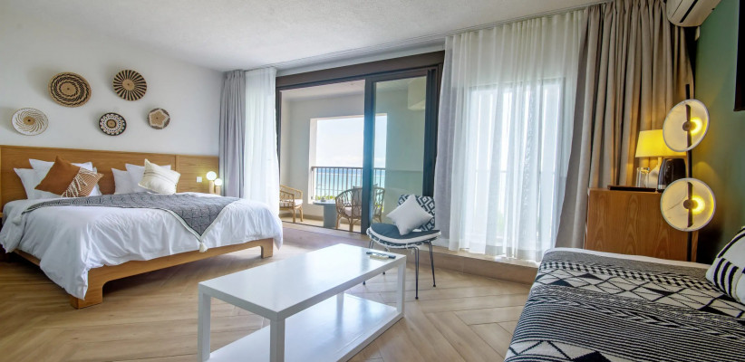 40 м2, терраса с видом на океан, спальня с двуспальной кроватью, гостиная зона. Максимальное количество гостей: 2.Family Room