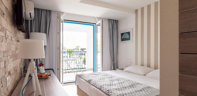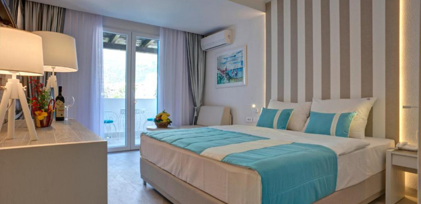 24 м2, номер с видом на горы, двуспальной кроватью, диваном-кроватью, террасой или французским балконом. Максимальное количество гостей: 2 взрослых и 1 ребенок.Double Bedroom Sea View With French Balcony