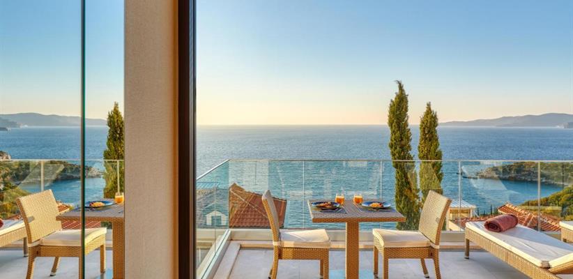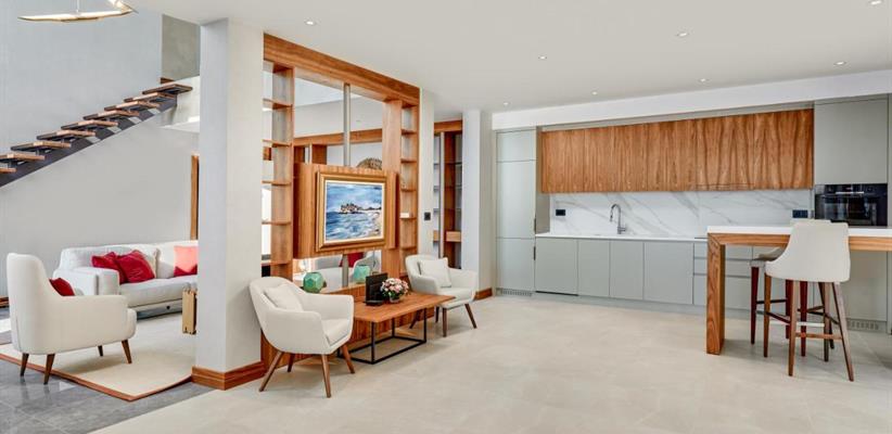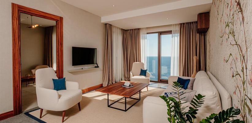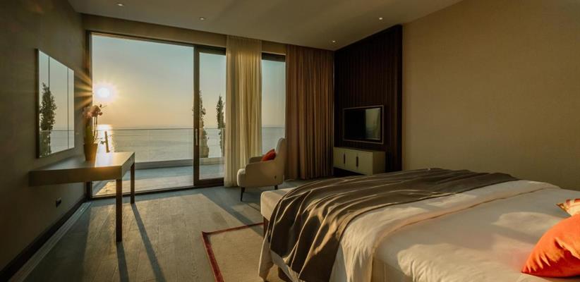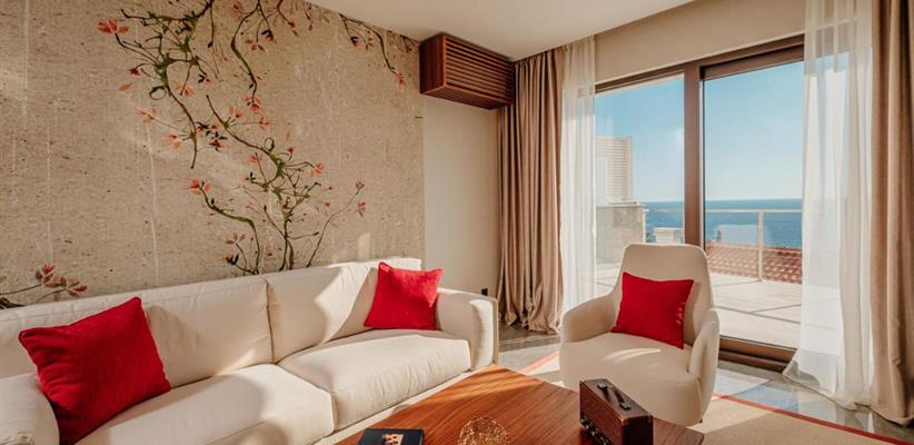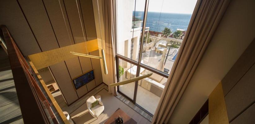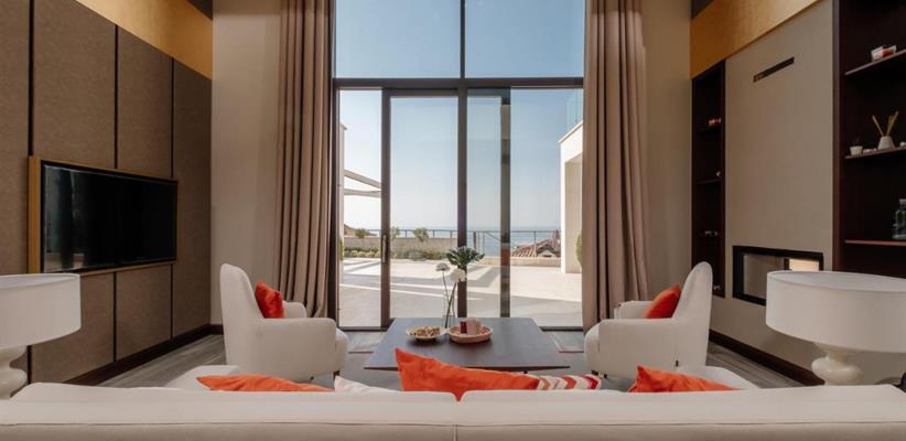 52–75 м2, номер с кроватью king-size, гостиной, оборудованной мини-кухней, просторной ванной комнатой с ванной или душем, меблированной террасой с видом на море. Максимальное количество гостей: 2 взрослых.Deluxe Suite