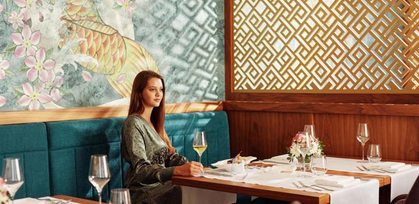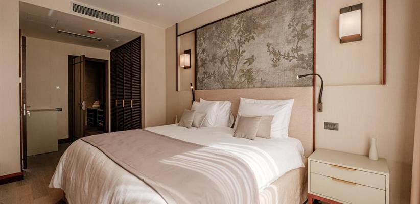 Архитектура комплекса подчеркивает изысканную простоту и утонченную роскошь: белоснежные фасады, панорамные террасы и мягкие линии зданий органично вписываются в природный ландшафт. Интерьеры выполнены в гармоничном сочетании азиатских и ближневосточных мотивов с классическими элементами Средиземноморья. Здесь каждая деталь продумана до мелочей – от текстур натуральных материалов до мягкого освещения, создающего атмосферу покоя и комфорта.
