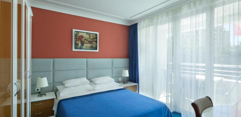 - Большинство номеров и апартаментов оборудованы балконом с видом на море и мини-кухней.