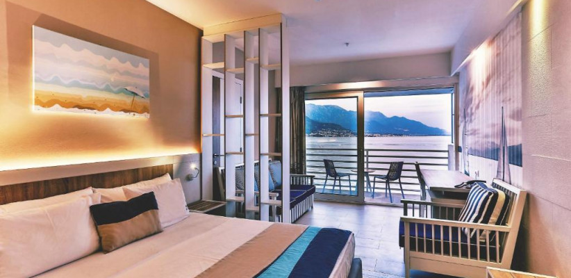 28 м2, номер с террасой, двуспальной кроватью, диваном, душем в ванной комнате. Максимальное количество гостей: 4.Superior Family Room with Sea View