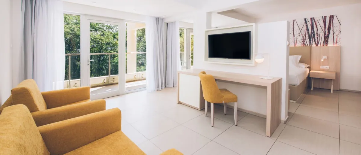 38–50 м2, балкон с видом на сад. Две односпальные кровати, гостиная.Sea View Junior Suite