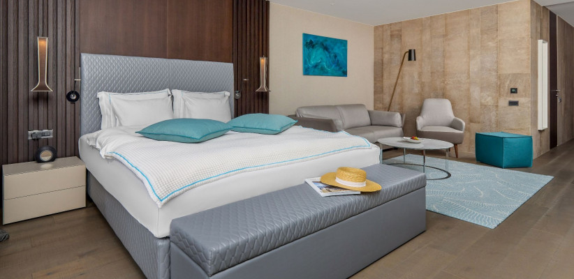 76 м2, номер с видом на море, балконом, диваном, зоной отдыха, рабочей зоной и душем в ванной комнате. Максимальное количество гостей: 2.Signature Suite Sea View