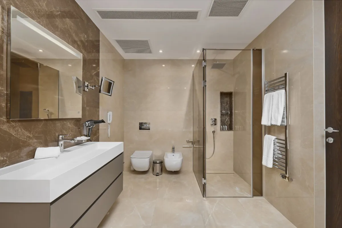 104 м2, номер с видом на море, частной сауной, гидромассажной ванной, полностью оборудованной кухней, зоной отдыха, обеденной зоной, доступом в Beach Club. Максимальное количество гостей: 2.