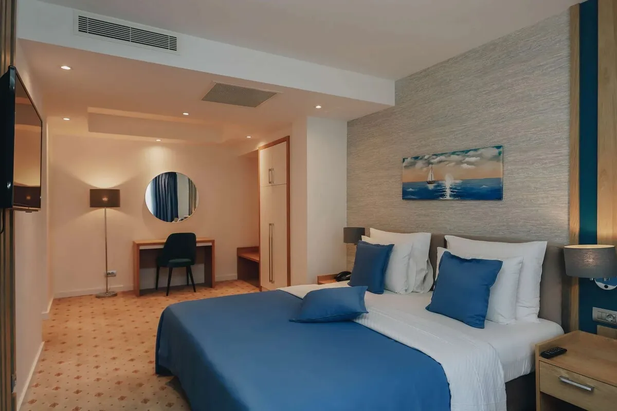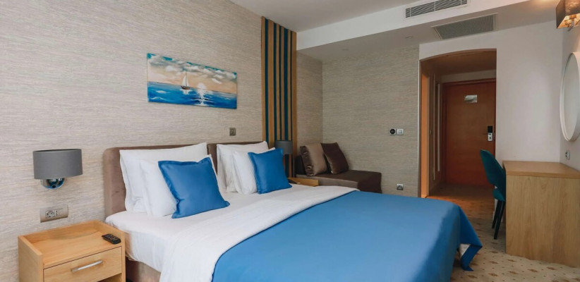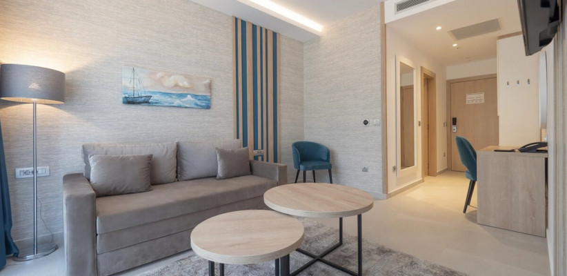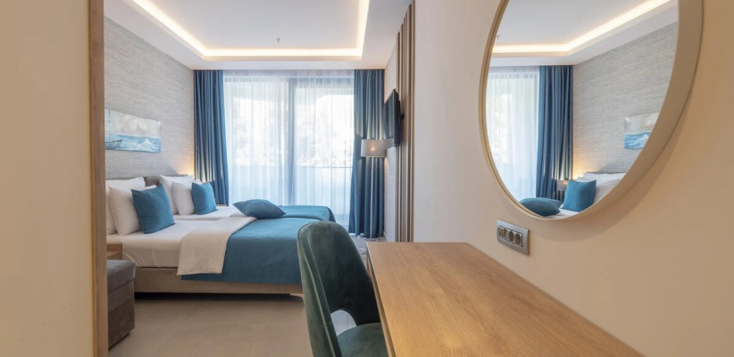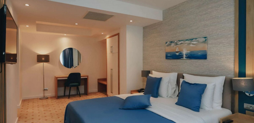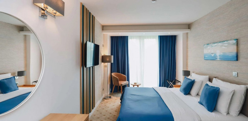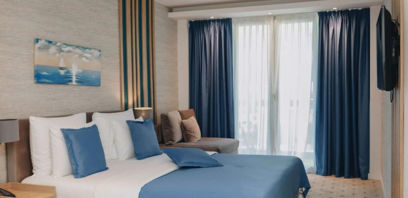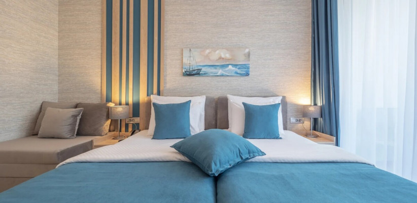 27 м2, две односпальные или двуспальная кровать, кресло-кровать, рабочая зона, балкон. Количество гостей: 3.Superior Seaside/ Улучшенный номер с видом на море